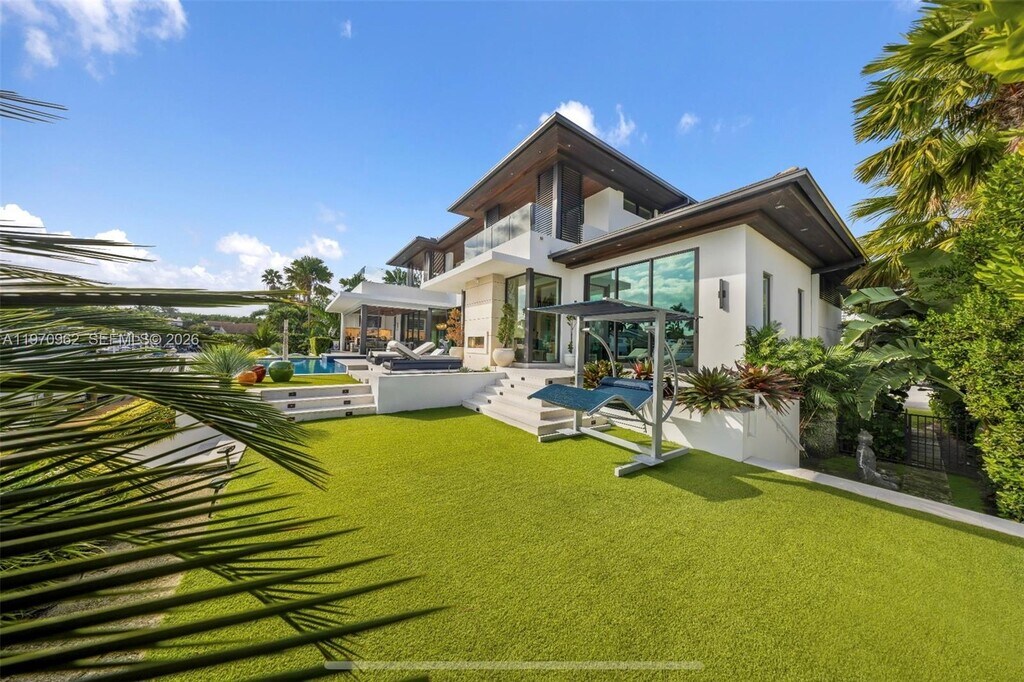 Experience the pinnacle of Coral Gables waterfront living in this exquisite 2023 new-construction residence. Designed by acclaimed architect Antonio Rodriguez of CAD Studio Architecture, this 5-bedroom, 5.5-bath home offers approximately 4,671 square feet of sophisticated living space on a rare 12,488 sq ft lot with an impressive 118 feet of direct canal frontage. Boasting a private dock, unrestricted saltwater access, no fixed bridges and just one block to the Atlantic Ocean, this boater’s paradise features a sparkling below-ground pool and spa, expansive covered terraces with built-in BBQ, open balconies and seamless indoor-outdoor flow. Interior highlights include soaring volume ceilings, impact windows and doors throughout, a gourmet kitchen, wet bar, fireplace, first-floor bedroom option, lavish primary suite with spa bath, and premium finishes at every turn. Situated on a quiet cul-de-sac in a voluntary HOA/gated enclave, this CBS-constructed home with flat tile roof and 3-car garage is the ultimate entertainer’s retreat and family sanctuary. Minutes to Miami’s finest dining, shopping, and cultural hotspots. The house can be rented unfurnished. MLS # A11970962