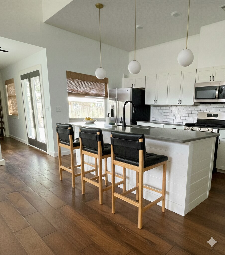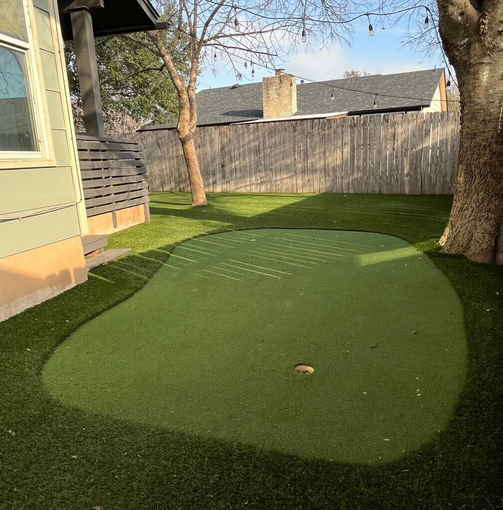 Welcome to your bright, modern retreat in North Austin! This thoughtfully updated home combines contemporary living with eco-friendly features that make a real difference in your monthly bills. The open-concept kitchen and living area is the heart of this home, featuring a large island perfect for meal prep, casual dining, or entertaining friends. Soaring 12-foot ceilings throughout the main living spaces create an airy, expansive feel, while high lateral windows flood the home with natural light all day long. The primary bedroom shares these dramatic high ceilings and abundant natural light, creating a serene retreat at the end of the day. Two very large walk-in closets provide exceptional storage space, while the primary bathroom features a spacious walk-in shower with a luxurious rain head. Washer and dryer included for your convenience. This home is designed with sustainability in mind. Solar panels significantly reduce electricity costs (usage dependent), while a large rainwater collection cistern in front helps with outdoor watering needs. Live greener while keeping more money in your pocket. The backyard is an entertainer's dream. Enjoy the maintenance-free turf lawn with built-in putting green—perfect for golf enthusiasts or families who want a lush yard without the upkeep. The oversized covered patio features two large fans, making it comfortable even on warm Texas days. Thanks to abundant shade trees, the backyard stays noticeably cooler during summer months. An 8x8 storage shed provides plenty of room for tools, outdoor gear, and seasonal items. Prime North Austin location—just 5 minutes from The Domain shopping center, 10 minutes to Q2 Stadium (Austin FC), and less than 20 minutes to downtown. Conveniently located near major tech campuses including Apple, Amazon, Samsung, and Dell. Easy access to major highways puts the entire city within reach. Available for immediate move-in. Contact us today to schedule a showing!