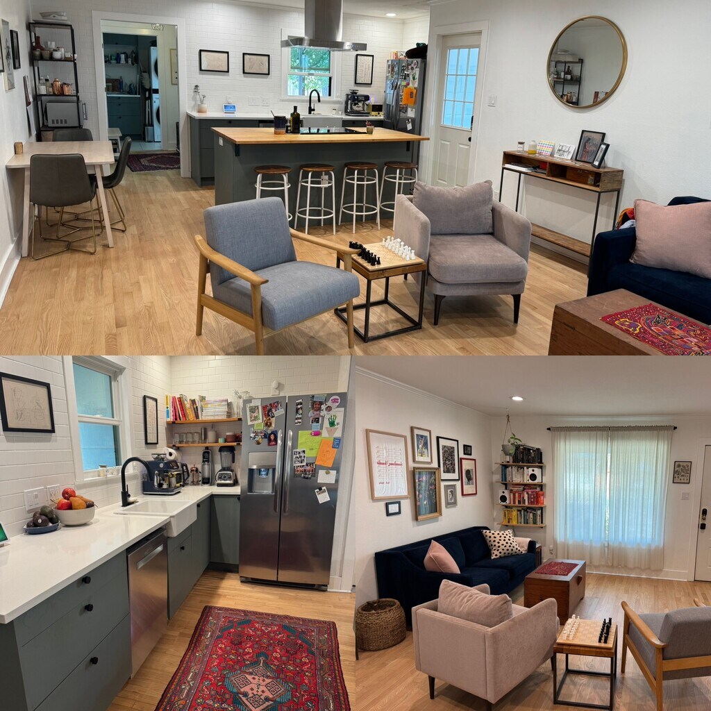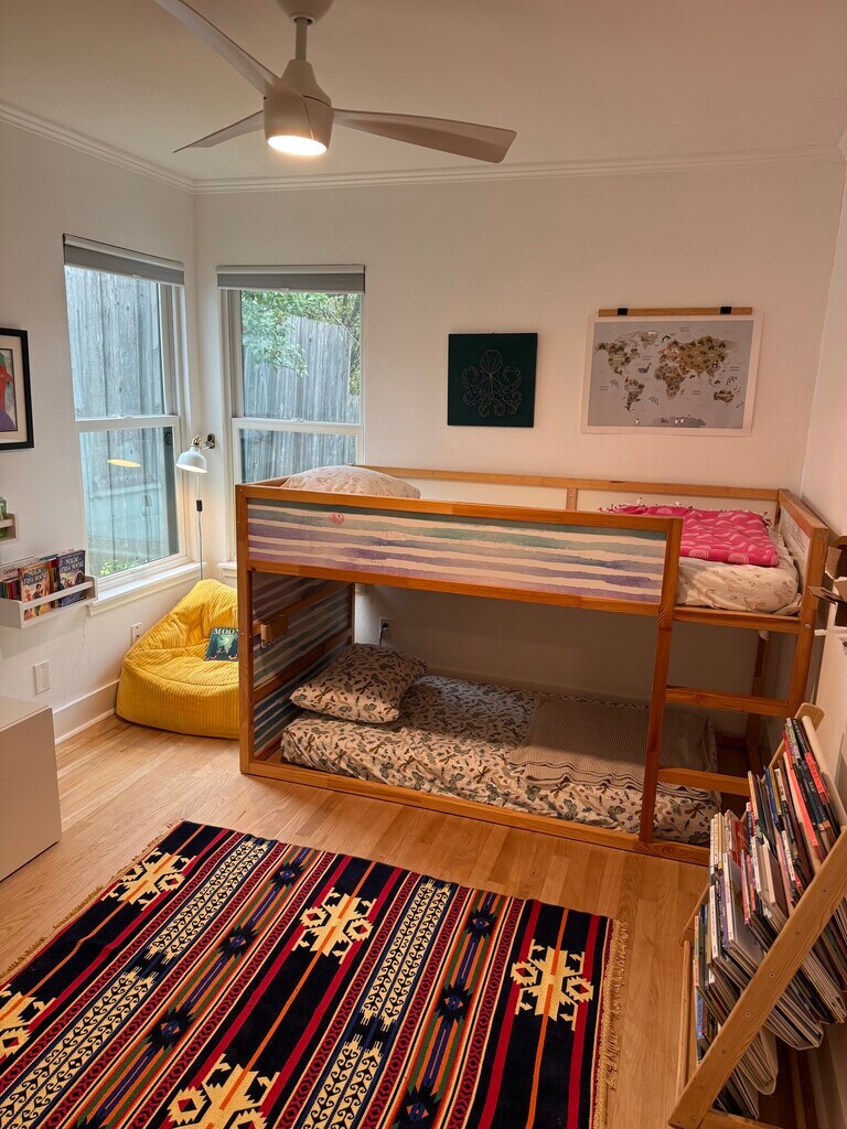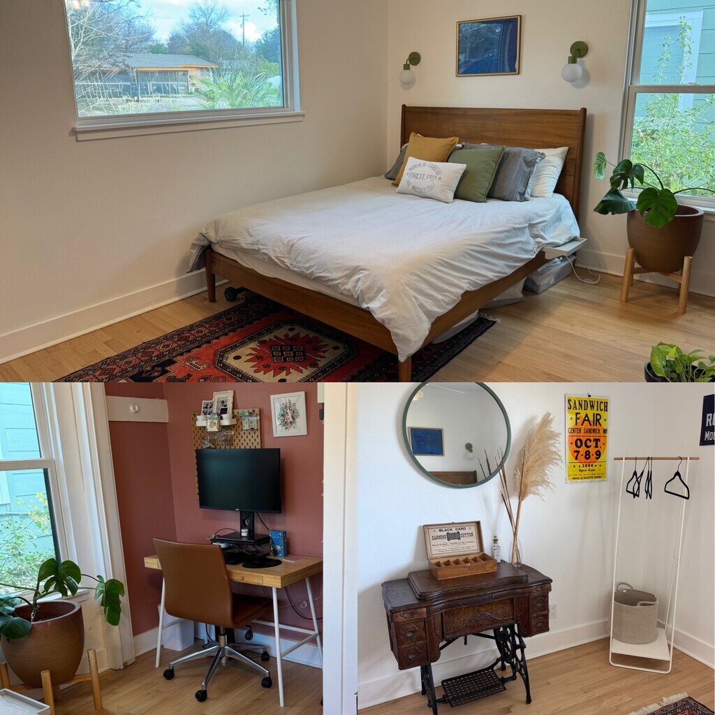 Cute ranch style home in Central Austin with updated master bath (featuring skylight!) and kitchen. Fully stocked kitchen includes pots/pans, plateware, glassware, utensils, microwave, espresso machine, soda stream, blender, etc. Master bed and guest bed have working spaces, 1 external monitor and WiFi to accommodate WFH needs. BIG back yard includes both dining and lounge area with solo stove fire pit, in addition to four raised bed planters to grow whatever your heart desires. Weve had a lot of success with rosemary and tomatoes. Listing details: - 3 bed, 2 bath - 1200 sq feet - Updated primary bath with Clay Import tiles, rain shower-head and skylight! - Updated kitchen with Samsung induction range - Laundry room with updated LG washer/dryer tower - Large backyard with 4 raised beds for flowers, veg, herbs - Outdoor dining area, seats 8 - Outdoor lounge area with Solo Stove fire pit - Storage shed - Google fiber WiFi - Google home with security cameras - Samsung Frame TV with Sonos sound system - West Elm furniture throughout home and guest bedroom - Furnished kids room if desired - Workstation with external monitor - Lots of other everyday living essentials (ex. espresso machine, printer, etc) if desired