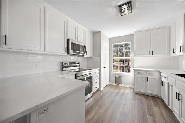 Welcome to 1301 County Road 705, a stunning, move-in-ready home nestled on 1 peaceful acre in Joshua, Texas. This remodeled 3 bedroom, 2 bath residence offers 1,756 square feet of modern comfort and country charm. Step inside to discover a bright, open layout with all new finishes throughout. Fresh paint, new flooring, doors, hardware, ceiling fans, and stylish light fixtures. The kitchen shines with brand-new countertops, a classic subway tile backsplash, new appliances, and updated cabinetry. Both bathrooms feature new vanities and contemporary fixtures, creating a clean and inviting feel in every space. Outside, you’ll love the updates just as much, including fresh exterior paint, a new concrete slab with an extended awning, and a durable metal roof. The property also includes an impressive 30x40 workshop, complete with two large bay doors and full electric service, perfect for projects, RV parking, storage, or hobbies. The split bedroom design provides privacy for the primary suite, while the open concept living and dining areas make this home perfect for family gatherings or entertaining friends. Enjoy quiet country living just minutes from town with plenty of room to spread out, work, and play.