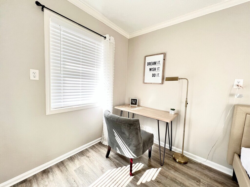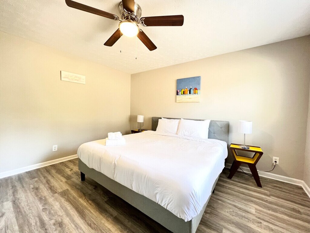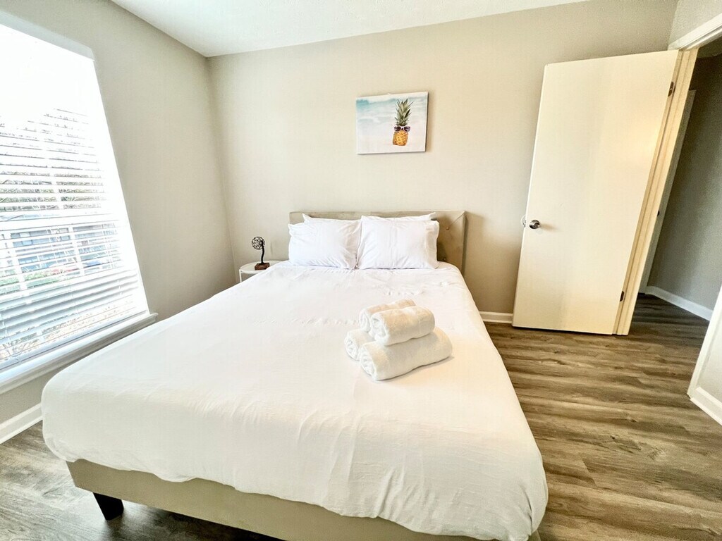 Welcome to the "House on a Hill," a unique Mid-Century Modern styled ranch house located in the prime area of Norcross. This charming home features three bedrooms and two bathrooms, comfortably accommodating up to eight guests. The property is known for its steep driveway, offering parking for up to three standard-sized cars. Ideal for families, big groups, and business travelers, this house provides a warm and homely atmosphere. Inside, the house is brightly decorated with a mix of mid-century and modern furnishings, creating a welcoming ambiance. The master bedroom boasts a king-size bed and a spacious en-suite bathroom, while the second and third bedrooms each feature a queen-size bed. The living room offers a comfortable sofa and a smart TV with free Netflix and Roku, complemented by high-speed internet. The open-concept kitchen is equipped with stainless steel appliances and basic kitchenware for simple meal preparation. Guests can also enjoy the convenience of a washer and dryer for long stays. Guests can request mid-stay cleaning services for an additional fee. Small pets under 25 lbs may be allowed with prior authorization and a non-refundable pet fee of $150 per pet per stay, with a maximum of two pets allowed. Conveniently located in the heart of Norcross, this home provides easy access to local amenities and attractions. The neighborhood is equipped with cameras for added security, ensuring peace of mind during your stay. Check-in is at 4 p.m., and check-out is strictly at 10 a.m., with a penalty fee of half the night’s stay for late check-out. Smoking, including electronic cigarettes, is prohibited within 10 feet of the property, with a $250 cleaning charge for violations. No loud noise, parties, or events are allowed, and the maximum capacity is 10 people. Unregistered guests will incur an additional charge of $50 per guest per night. The property is pet-free unless prior authorization is given. Please respect the privacy of neighbors and keep the property clean. Parking is limited to four standard-sized cars, with no overnight street parking allowed. The house is equipped with cameras for security, and guests are required to follow all community guidelines. The house includes a dedicated workspace for those who prefer to work in style, ensuring a comfortable and productive environment. [SI]