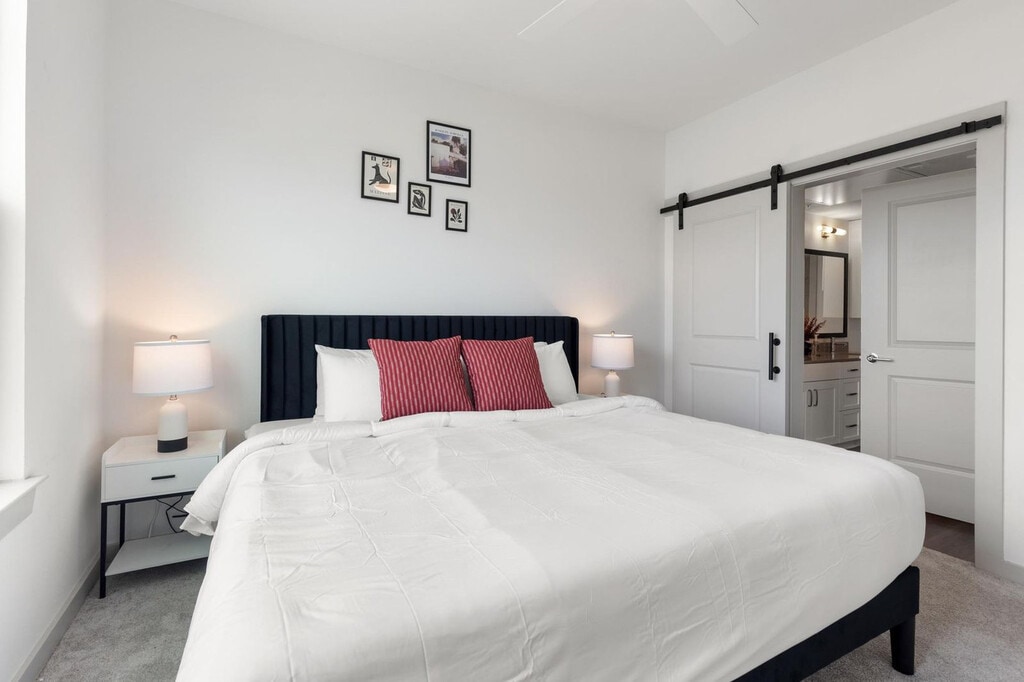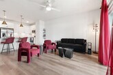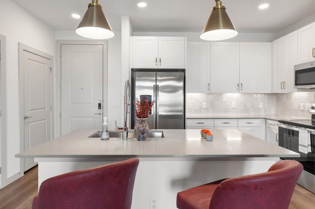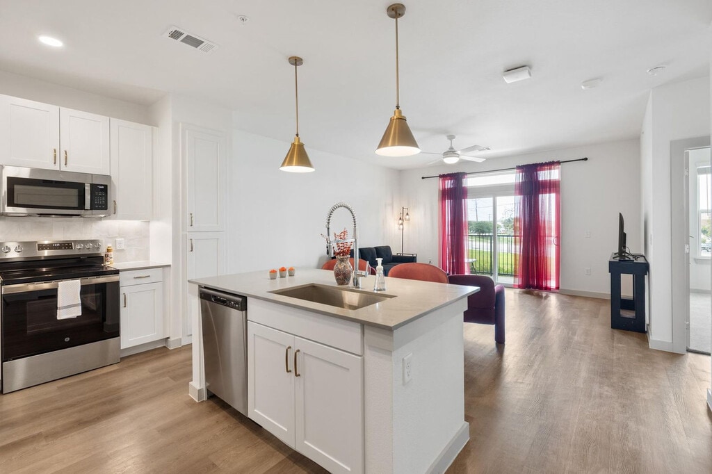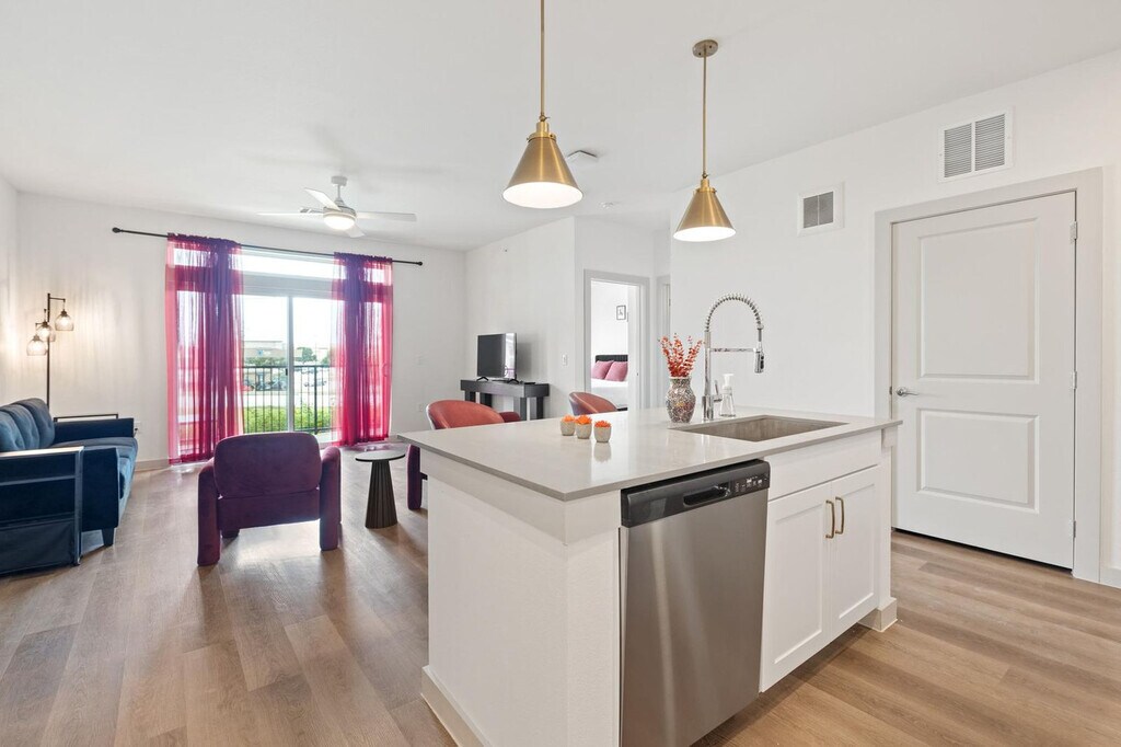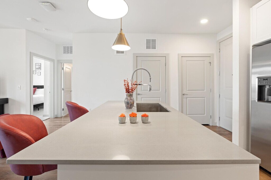 Experience modern comfort and feel at home in this bright 1-bedroom apartment at The Merriman in San Marcos. This apartment features an open living area with a smart TV, a private balcony, and a fully equipped kitchen with stainless appliances and quartz countertops. The king-size bedroom, walk-in closet, sleek shower, and in-unit laundry add convenience. Community perks include a resort-style pool, fitness center, outdoor kitchen, fire pits, and game lounge. [SI]