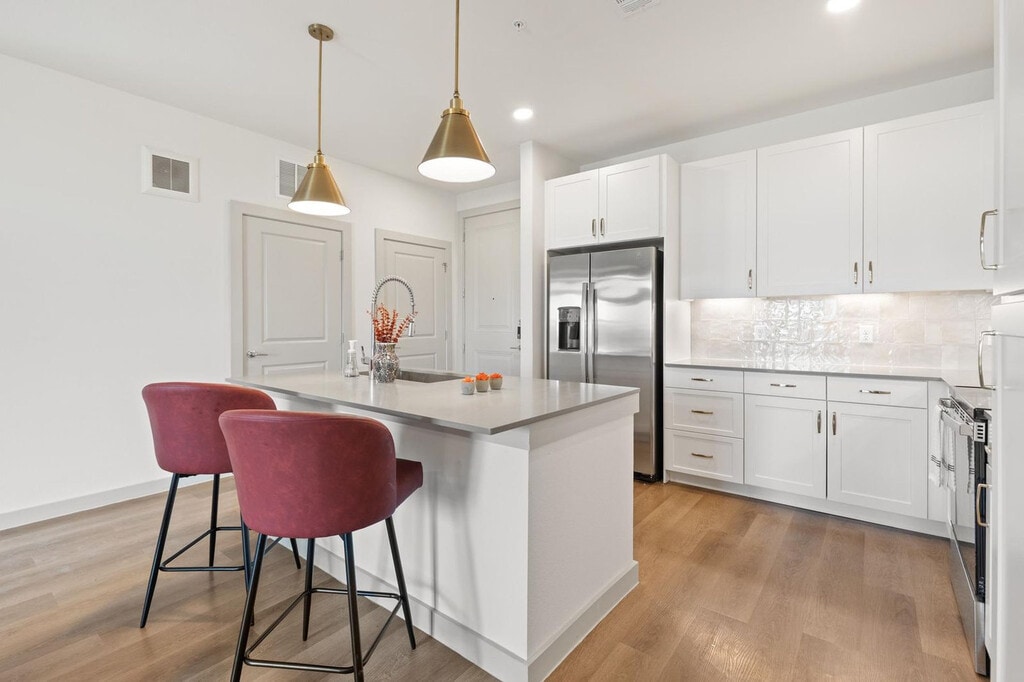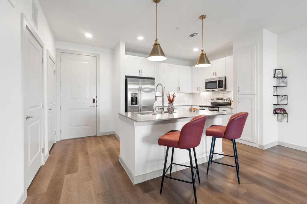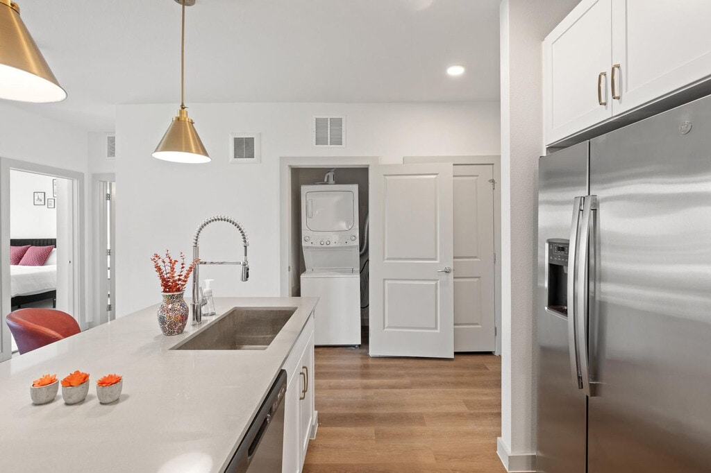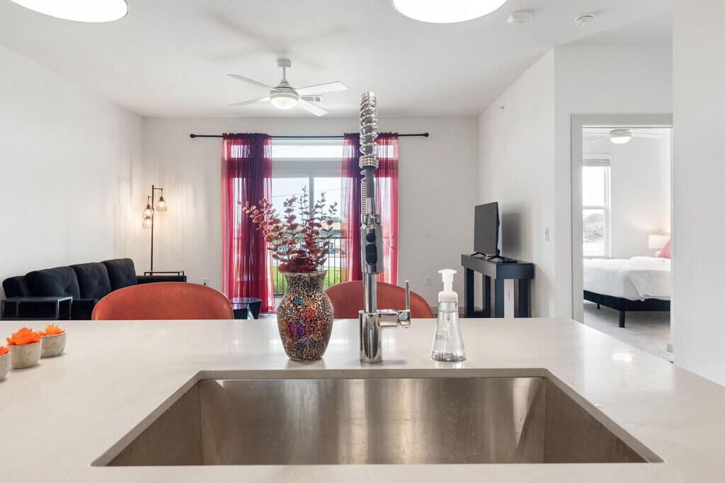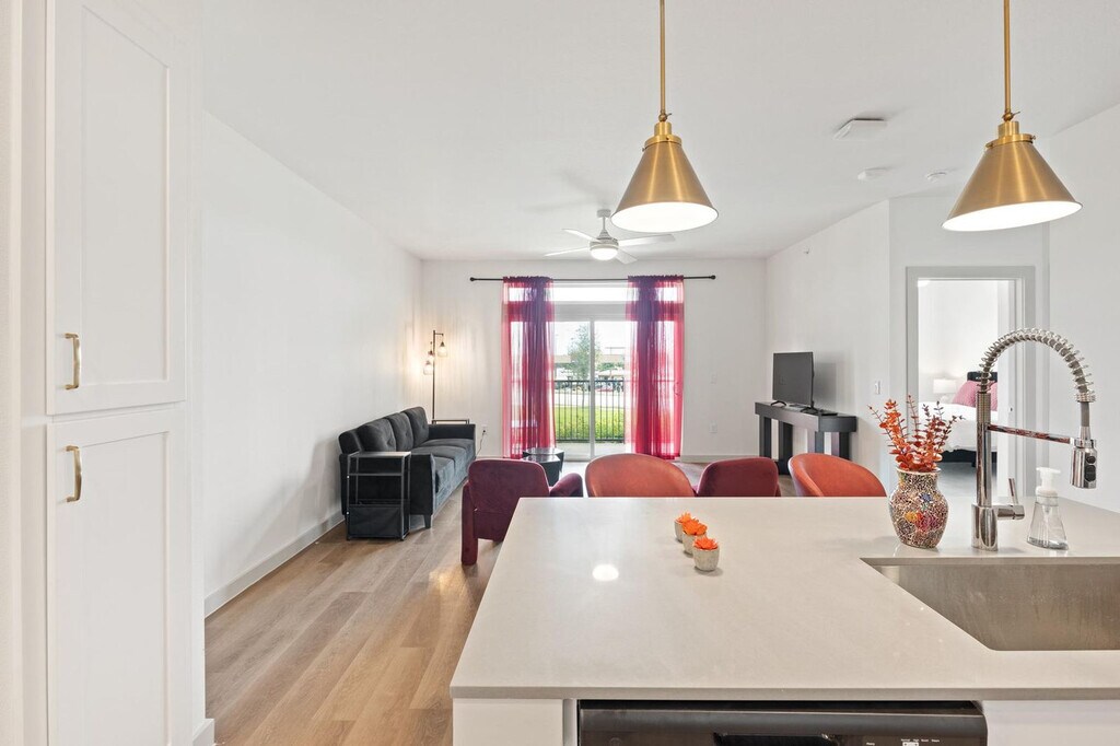 Experience modern comfort and feel at home in this bright 1-bedroom apartment at The Merriman in San Marcos. This apartment features an open living area with a smart TV, a private balcony, and a fully equipped kitchen with stainless appliances and quartz countertops. The king-size bedroom, walk-in closet, sleek shower, and in-unit laundry add convenience. Community perks include a resort-style pool, fitness center, outdoor kitchen, fire pits, and game lounge. [SI]