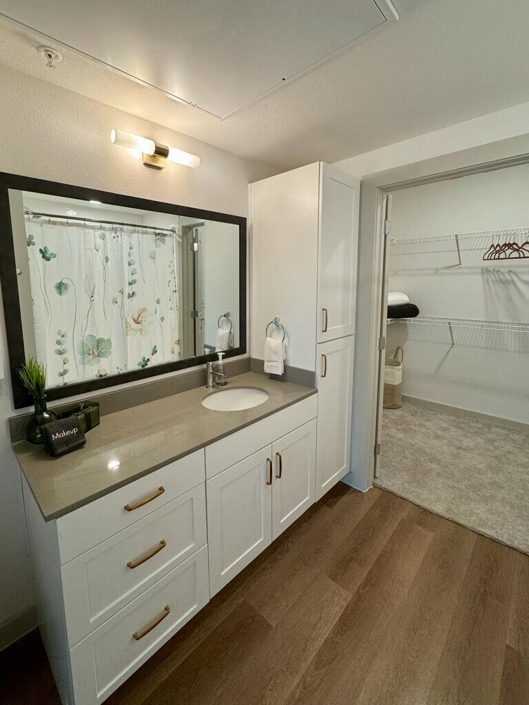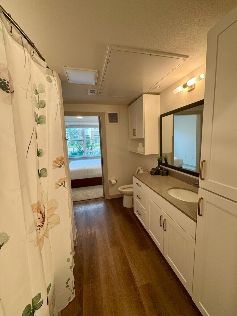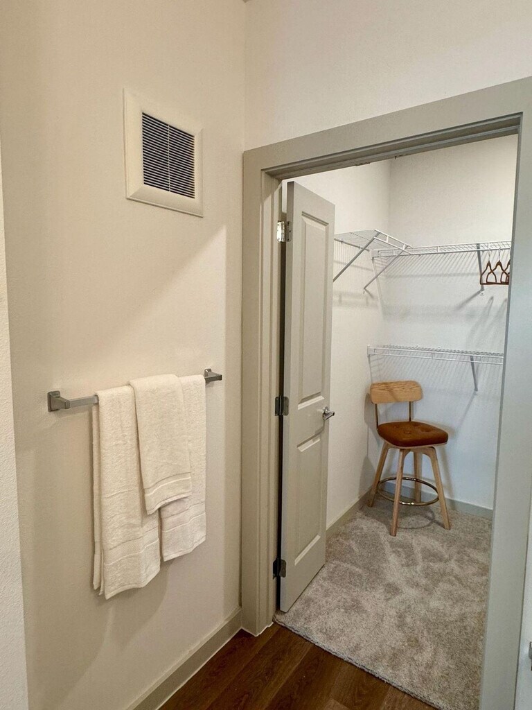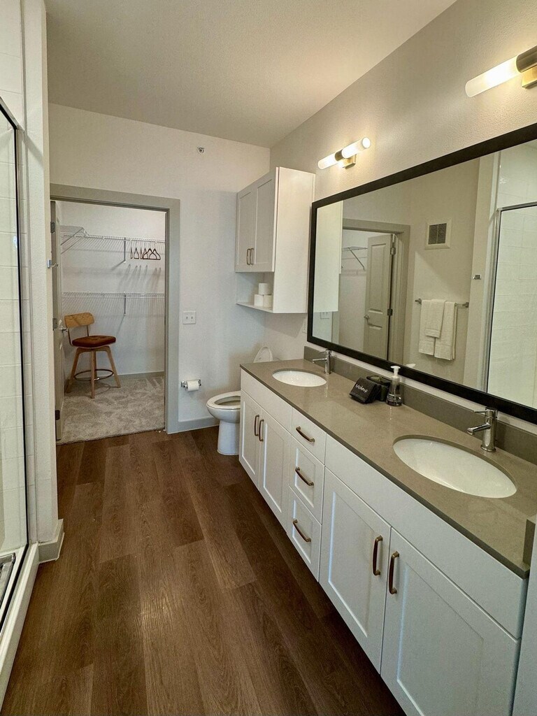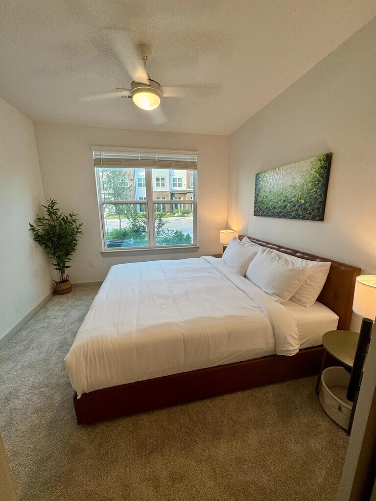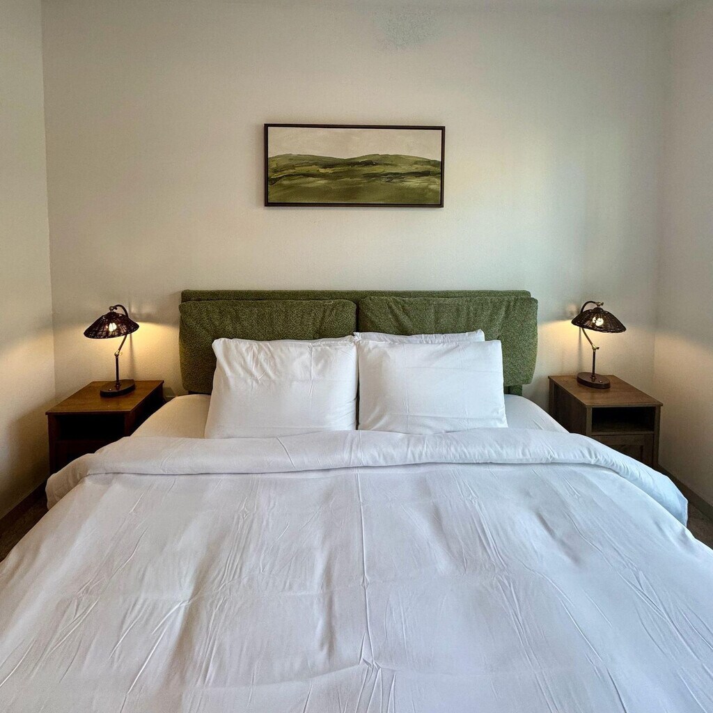 Feel at home in this bright and comfortable 2-bed, 2-bath apartment at The Merriman in San Marcos. This apartment features a spacious layout with wood flooring, modern lighting, a cozy living area, a smart TV, and a private balcony. The kitchen includes stainless appliances, quartz counters, and an island. The bedrooms offer king-size beds and ample closets. Guests enjoy access to a resort-style pool, fitness center, coworking areas, lounges, and game room. Guests enjoy convenient access to nearby dining and shopping. [SI]
