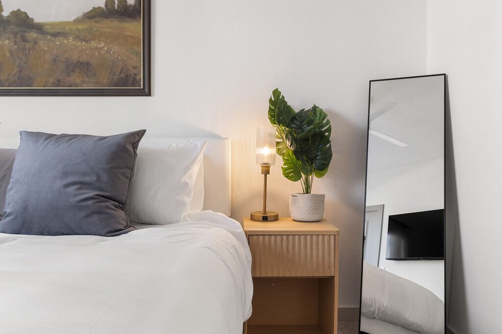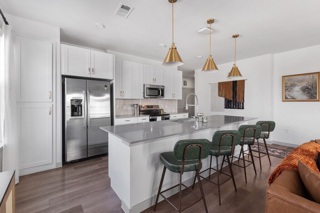 The advertised rate of $3,330/month is the lowest available price, based on a 30 day(s) stay with a move-in date of May 21, 2026. Rates vary depending on the duration of stay, season, and other parameters. For exact pricing and additional pricing components, please visit our website and enter your desired move-in and move-out dates. The rate is applicable when billed upfront; it can be higher if billed in multiple payments. Feel at home in this refined ground-level 2-bedroom, 2-bath residence with direct patio access. This residence blends contemporary design with warm, inviting finishes. The open-concept layout creates a seamless connection between the kitchen, dining, and living areas, offering both comfort and functionality. The kitchen features quartz countertops, sleek cabinetry, stainless steel appliances, and a generously sized island with bar seating. We provide instant coffee and an electric kettle. The living area is spacious and thoughtfully arranged, with large windows allowing natural light to fill the space. An in-unit washer and dryer add convenience. Paid parking is available. This home offers effortless indoor-outdoor living. Quiet hours are between 9pm and 9am, and there is a $200 fee for noise disruptions, with possible removal from the property. If you smoke in the apartment, hallways, or common areas, or if cigarette butts are left on the grounds, you will be charged an additional fee of $1,000 for deep cleaning and odor abatement. Pets are allowed for an additional cleaning fee of $50, but no aggressive breeds are permitted. Check-in is after 4:00 pm and check-out is before 11:00 am. [SI]