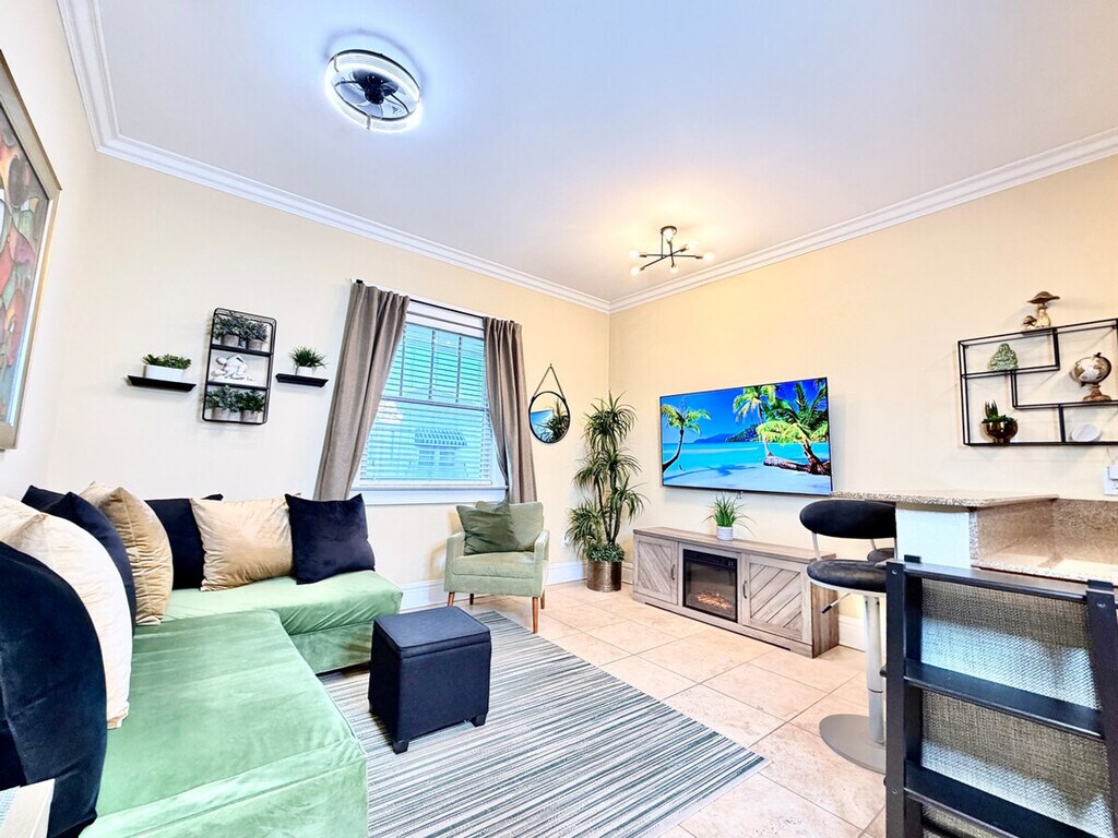 Welcome to this apartment in the heart of Hyde Park! Feel at home in a prime location where you can enjoy a leisurely stroll to trendy boutiques, top-rated restaurants, and vibrant cafés. The apartment is fully equipped with everything you need to cook and dine in style, including cooking basics, a blender, toaster oven, microwave, stove, dishwasher, freezer, coffee maker, hot water kettle, wine glasses, dishes, silverware, and cleaning products. The living room features a 65” smart TV with popular streaming apps and an indoor fireplace. The bedroom offers a plush queen-size bed with luxury linens, extra pillows and blankets, a Roku Smart TV, room-darkening shades, and clothing storage with hangers. The bathroom includes a bathtub, hot water, shower gel, shampoo, conditioner, body soap, soft towels, toilet paper, soap, and a first aid kit. A small washer and dryer are available in the apartment, along with air conditioning and ceiling fans. Enjoy free parking on the premises, located at the rear of the apartment. Luggage drop-off is allowed for early arrivals or late departures. A pack ’n play/travel crib is available upon request. A pet fee of $100 is applicable. You’ll be just minutes away from Tampa’s iconic spots, such as Amalie Arena, Sparkman Wharf, and Bay Shore for biking along the water. Explore the vibrant energy of Water Street, immerse yourself in the history of Ybor City, or unwind at Armature Works. Tampa International Airport is 5 miles away, Hyde Park Village is 0.3 miles away, Tampa General Hospital is 1 mile away, The University of Tampa is 1/2 mile away, Tampa Convention Center is 1 mile away, Riverwalk Tampa Florida is 1.3 miles away, Amalie Arena is 1.4 miles away, Tampa Bay History Center is 1.6 miles away, Sparkman Wharf is 1.7 miles away, Downtown Tampa is 1.9 miles away, Florida Aquarium is 1.9 miles away, Armature Works is 2.1 miles away, Ybor City Historic District is 4.2 miles away, Zoo Tampa is 6.3 miles away, Hard Rock Hotel and Casino is 8.6 miles away, Busch Gardens is 10.9 miles away, Downtown St.Pete is 21.6 miles away and St. Pete Beach is 25.8 miles away. All travel times are subject to traffic. Private gym with exercise equipment and a sauna are available. To access the red light therapy bed and infrared sauna, guests must make an appointment by text. Includes a fold-away desk and chair for a dedicated workspace and high-speed internet and Wi-Fi for seamless connectivity. The apartment has a private entrance, access to one private parking spot in the back, plenty of street parking, laundry, gym, and courtyard. The courtyard features an open space with outdoor furniture, a barbecue grill and barbecue utensils, and a fire pit. [SI]