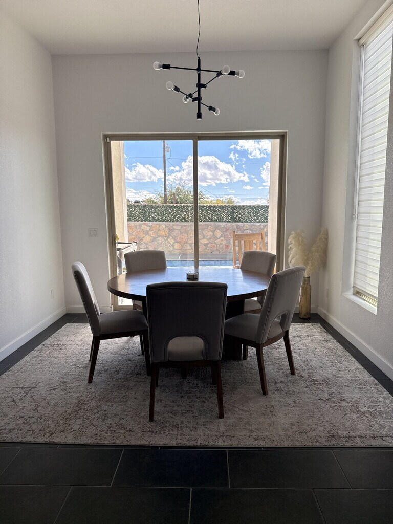 Engage with the elegance and comfort of your dream home at 13010 Terrington Avenue, nestled in the vibrant city of El Paso, TX. This stunning rental property boasts four spacious bedrooms, two full baths, and an additional half bath, catering to all your living needs. Encompassing 2,022 square feet of beautifully designed space, this home is perfect for those who appreciate both style and functionality. The heart of the home features exquisite granite countertops, offering a sleek and modern touch to the kitchen, ideal for culinary enthusiasts and family gatherings alike. Imagine relaxing in your private oasis, complete with a shimmering swimming pool, perfect for unwinding after a long day or hosting memorable poolside gatherings with friends. Each room is thoughtfully designed to maximize comfort and convenience, ensuring a harmonious living experience. The open floor plan seamlessly connects the living areas, creating an inviting atmosphere for entertaining guests or enjoying quiet family evenings. PMI residents are enrolled in the Resident Benefits Package (RBP)which includes HVAC air filter delivery, utility concierge service making utility connection a breeze during your move-in, our best-in-class rewards program, & more! With renters’ insurance.