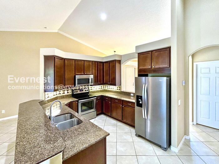 This spacious home provides modern comfort in a well-maintained community with walking paths, a sports court, and convenient nearby amenities. Features: - 3 bedrooms, 2 bathrooms, plus a bonus flex room - Open floor plan with vaulted ceilings, crown molding, and ceiling fans throughout - 24" diagonal tile flooring with new carpet in bedrooms and flex room - Kitchen with 42" maple cabinets, granite countertops, tiled backsplash, under-cabinet lighting, dry bar, and pantry - Includes refrigerator, freezer with icemaker, electric range, microwave, dishwasher, and garbage disposal - Upgraded bathrooms with granite counters, linen closets, and spacious master shower with private toilet room - His-and-hers closet systems in the master bedroom - Laundry room with deep utility sink and washer/dryer hookups - 2-car garage with storage racks, pull-down screen, and decorative engraved/stained driveway - Expansive, engraved and stained back porch with upgraded no-see-um screening - Central heating and air conditioning Community with walking paths and sports courts; close to shopping, dining, schools, and highways 1 Gig internet service for $65.95/month. Please confirm service availability with our team before activation. Pets: Yes to large dogs and cats. 3 Max. Included: Trash through HOA. Residents are responsible for all other utilities. Application; administration and additional fees may apply. Pet fees and pet rent may apply. All residents will be enrolled in the Resident Benefits Package (RBP) and the Building Protection Plan, which includes credit building, HVAC air filter delivery (for applicable properties), utility setup assistance at move-in, on-demand pest control, and much more! Contact your leasing agent for more information. A security deposit will be required before signing a lease. The first person to pay the deposit and fees will have the opportunity to move forward with a lease. You must be approved to pay the deposit and fees. Beware of scammers! Please contact Evernest Property Management at before leasing. Evernest will never request you to pay with Cash App, Zelle, Facebook, or any third party money transfer system. This property allows self guided viewing without an appointment. Contact for details.