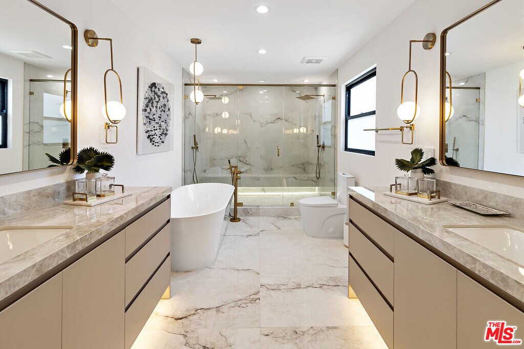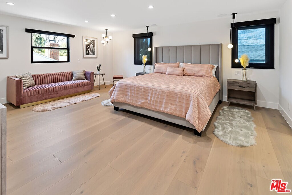 If you're searching for a peaceful and secure neighborhood to move to, look no further. This stunning newly built home is situated in the charming neighborhood of Sherman Oaks, known for its family-friendly atmosphere and beautiful tree-lined streets. The owner invested a significant amount of money in high-end finishes. The open floor plan is perfect for hosting guests, with a large living room, dining area, and a modern gourmet kitchen equipped with top-of-the-line Thermador appliances, custom cabinetry, a double sink, and a large island for meal preparation and serving. The first floor includes two guest bedrooms, a jack-and-jill bathroom, and a fancy glass wine cellar; upstairs, you'll find three generously sized bedrooms. The primary suite features a lavish bathroom with a large dual shower, double vanity, and a walk-in closet. A washer and dryer, as well as a security system, have been added for your convenience. The basement has been expanded to increase the house's total square footage. It now includes a Movie Theater, a fully equipped GYM, and a bonus room that can easily be converted into a game room. The outdoor area has a secluded backyard with a HOT TUB and a built-in BBQ, ideal for outdoor activities and relaxing evenings with family and friends. In addition, there is a 400 sqft cabana that can serve as a recreational room or an extra storage room. The home is secured and gated, ensuring safety and privacy, and features a one-car garage and gated driveway that can accommodate 4 more vehicles. It is conveniently located close to houses of worship, has some of the best dining, shopping, and entertainment options, and has major transportation routes for easy commute. MLS# 26650893