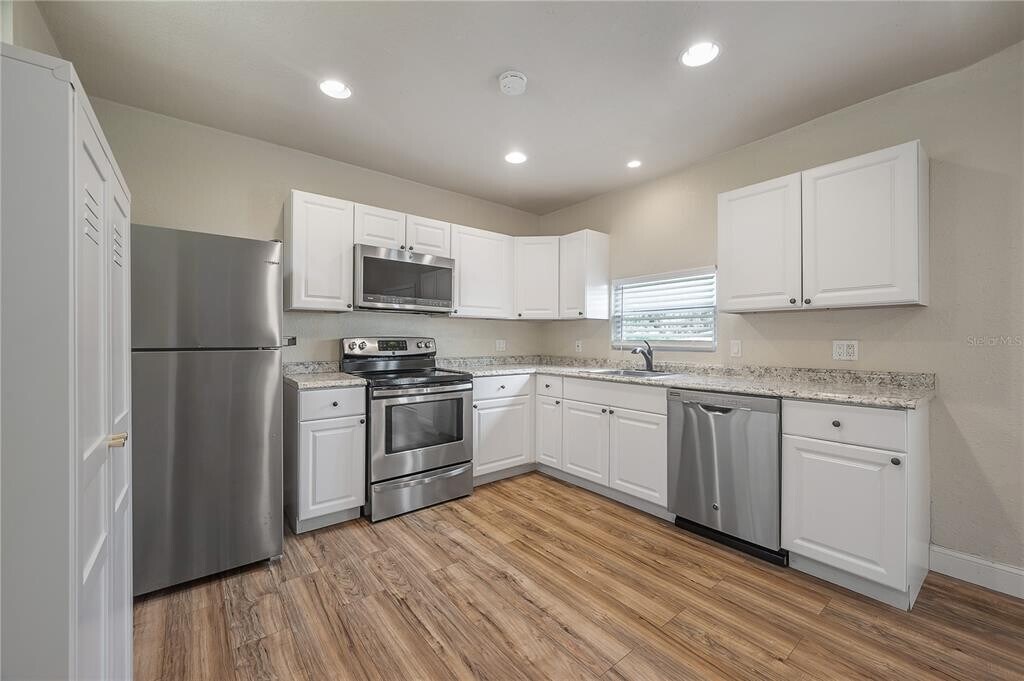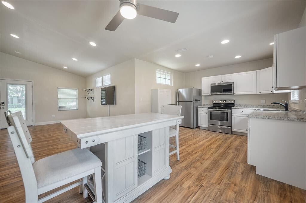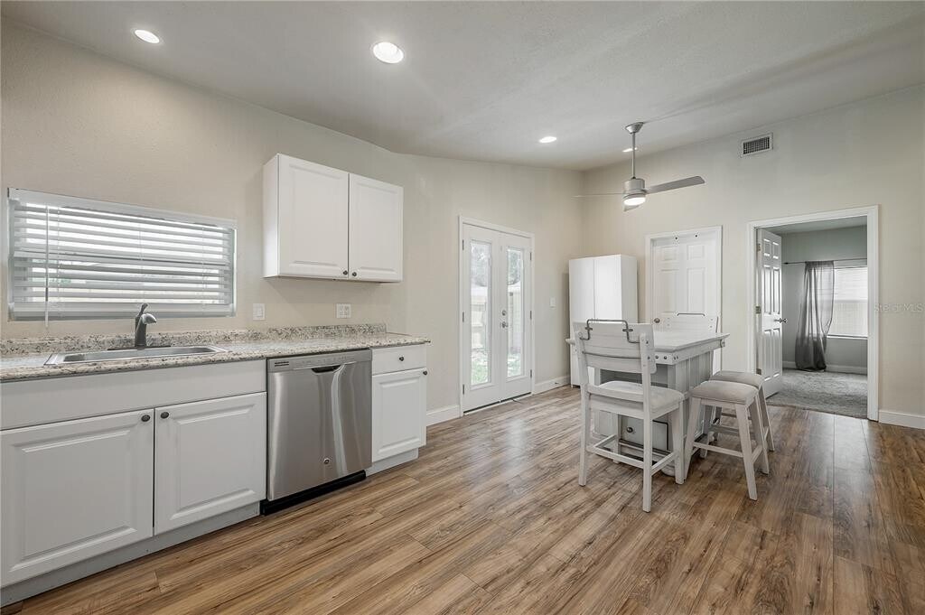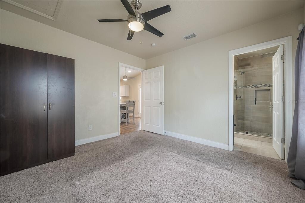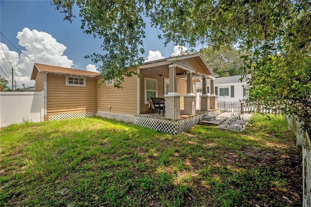 Available now,this charming Seminole Heights bungalow offers 2 bedrooms and 2 bathrooms with an open floor plan and vaulted ceilings. The family and dining room combination flows seamlessly into the kitchen,which features stainless steel appliances and granite countertops. Wood laminate flooring runs throughout the main living areas,while the master bedroom is carpeted and includes an en-suite bathroom with a walk-in tiled shower. The private,fenced backyard provides ample space for relaxing or entertaining and includes a detached garage perfect for additional storage. Located on a quiet street with extra parking and friendly neighbors,this home is in a prime location just minutes from Seminole Heights shops,restaurants,breweries,Armature Works,ZooTampa,Downtown Tampa,Hyde Park,and Tampa International Airport. MLS# TB8414587