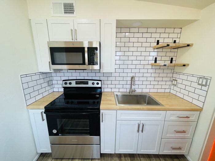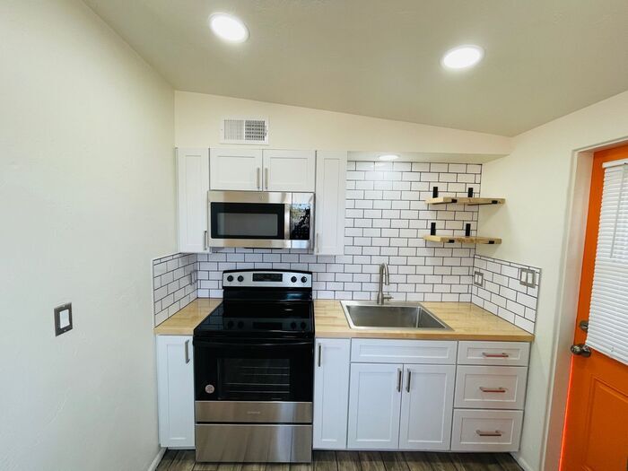 Centrally Located, The Richey offers many amenities inside and out of this quaint community! An incredibly stylish "Mid-Century Modern" inspired remodel boasts new everything! From neutral colored, modern plank tile throughout, to big windows and funky light fixtures that illuminate every corner of this home and it's beauty! Whip up a home cooked meal with a fully equipped kitchen, including brand new gas stove, fridge and beautiful butcher block counters! This is a pet friendly community, and enjoy time outside with your pet or kids in your newly extended backyard! Easy and lockable gate access through the stunning corten fence, exclusively your own! You can't miss this central Tucson community, follow the bright orange doors, and coordinating teal patio furniture, included with the rental! This unit also includes: - A/C - Lockable storage unit - Assigned Covered carport parking - Guest and street parking also available - Laundry Facilities available - Close proximity to U of A, Downtown Tucson, Local Schools, Shopping and Public Transportation A must see, inquire now to view this beautifully crafted, unit! To view or lease, please contact Cari at . Equal Housing Opportunity Contact us to schedule a showing.