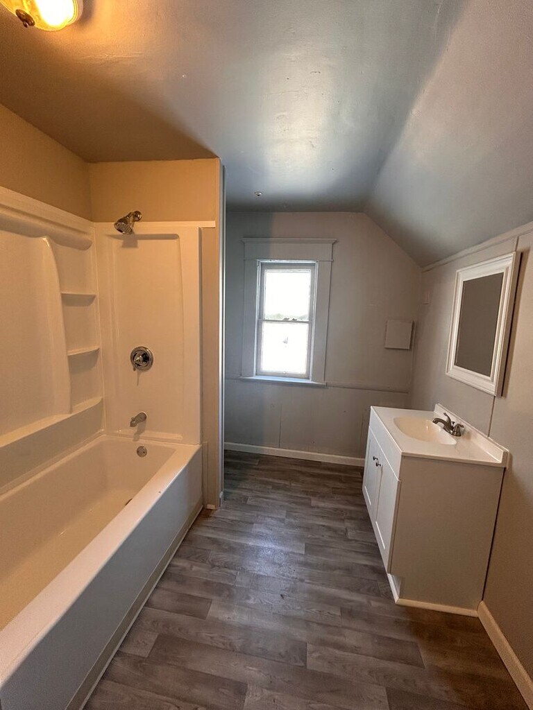 Like new! 3 bedroom 2 story on basement, hardwood floors, large eat in kitchen with dishwasher, some new windows, enclosed front porch. Initial holding fee determined with approved application.