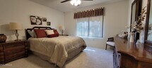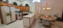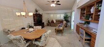 Spacious furnished 2-bedroom,2-bath home in Sun City West is available as a short-term or long-term rental-- minimum 3-month lease term. Space includes 2 living rooms,2 dining areas,2-car garage,and large laundry room. Patio furniture and a healthy grapefruit tree in the backyard finish off the features. HOA takes care of front and backyard grass. Tenant pays for electricity and internet/TV services. Available 11/01/25.