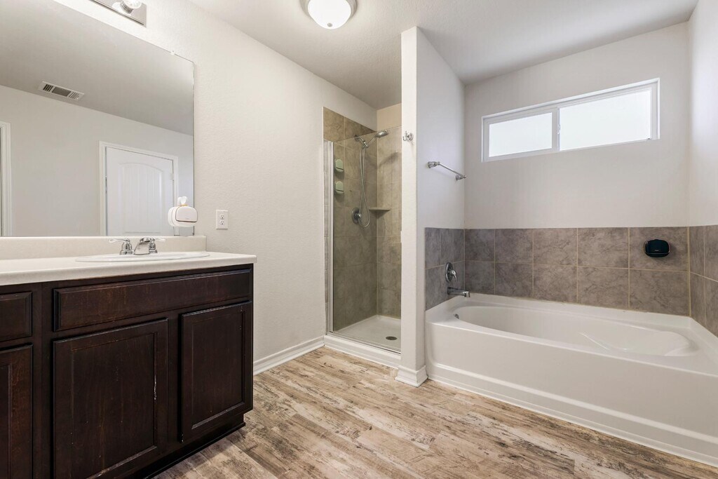 Welcome to this beautiful 3-bedroom, 2-bath home in the highly desired Whisper Falls community on San Antonio's Far West Side! Enjoy an open floor plan with a spacious living area that flows seamlessly into the modern kitchen featuring an island/breakfast bar combo - perfect for entertaining. The primary suite offers a private retreat with a separate tub and shower. Additional perks include a water softener, smart garage door opener, and doorbell camera for added convenience. Neighborhood amenities are unmatched - including a resort-style pool, clubhouse, fitness center, walking trails, and sports courts. A Vivint security system with 4 exterior perimeter cameras is already installed and available for tenant use for $70/month if desired.