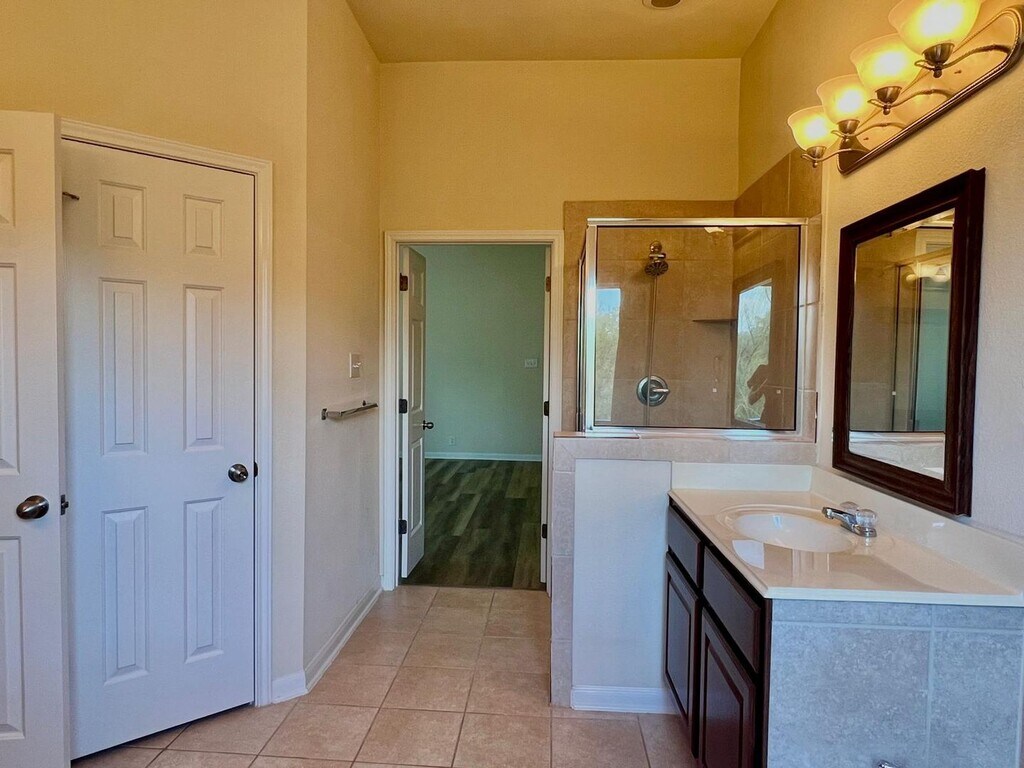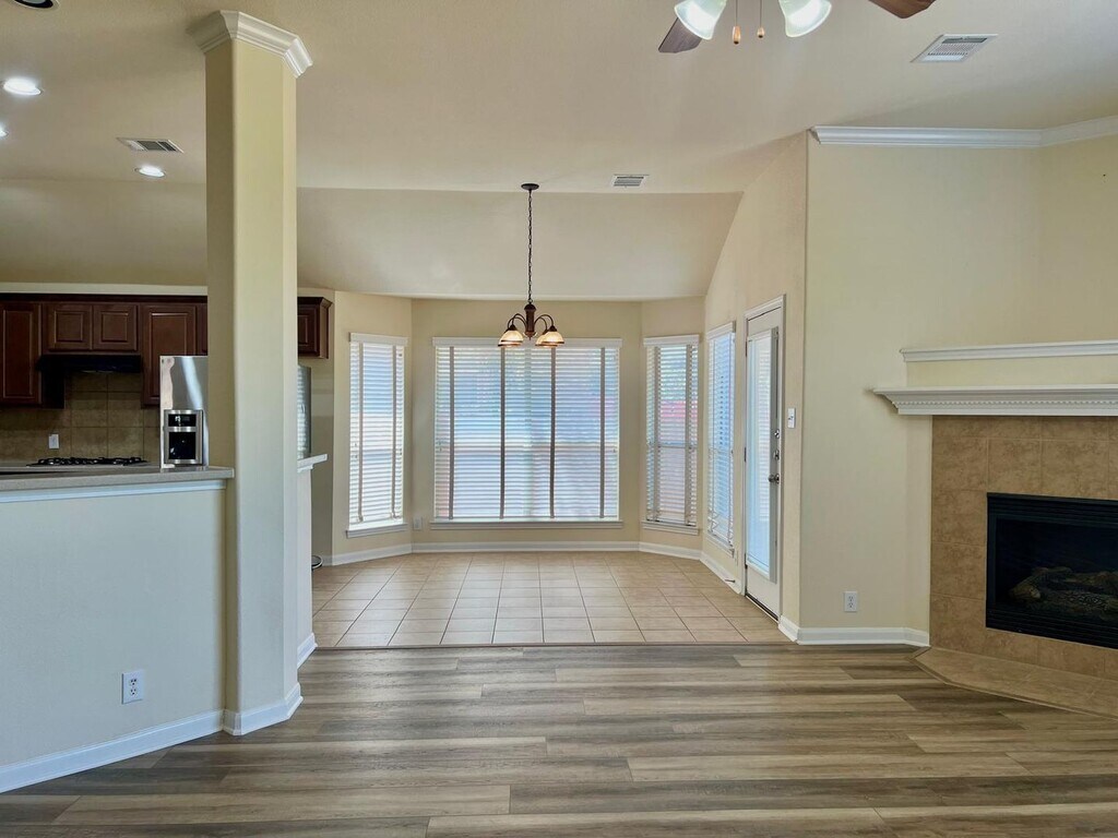 Step into your dream home! This gorgeous custom single-story residence offers 2,300 sq. ft. of comfortable living space, featuring 3 bedrooms, 2 baths, and a dedicated office. Enjoy beautiful ceramic tile in wet areas, neutral paint tones, and blinds throughout. The grand foyer with tray ceiling opens to a spacious family room that flows seamlessly into the kitchen-complete with a breakfast bar, stainless-steel appliances, and sleek Silestone countertops. The primary suite boasts dual vanities, an oversized tub, separate shower, and a generous walk-in closet. Conveniently located near Hwy 90 & Loop 1604 and just minutes from Lackland AFB. Don't miss your chance-schedule your showing today!