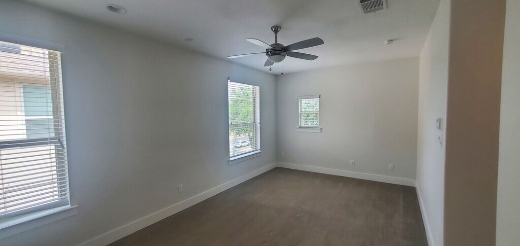 This energy efficient, urban townhome end unit features 2 bedrooms, 2.5 bathrooms, 2 living areas, high ceilings, and hardwood floors in all common areas. One bedroom with full bath is on the ground floor along with an attached and private 2 car garage, and utility closet with washer and dryer connections. Second floor is an open living, dining, and kitchen along with a half bath. Gourmet kitchen features stainless steel appliances, granite countertops, designer backsplash, large island, and a spacious walk-in pantry. The third floor has a second living room next to the primary bedroom that can be used for a large office or flex space. The primary bedroom has a huge walk-in closet with built-in shelves and a large primary bathroom with dual vanity sinks. Hardwood flooring throughout most common areas with new LVP flooring in both bedrooms and ceramic tile in all bathrooms and utility closet. A rooftop deck is on the top floor with a good view of the Dallas skyline. This townhome community features outdoor gated area with bbq grills under a pergola, a firepit, and designated pet areas which tenants get access to. Located in Bryan Park near Old East Dallas and right next door is just a few steps away from Exall Park and Recreation Center. It is also in close proximity to Baylor hospital, Downtown Dallas, Uptown, and West Village with quick access to numerous shopping, dining, and entertainment options.