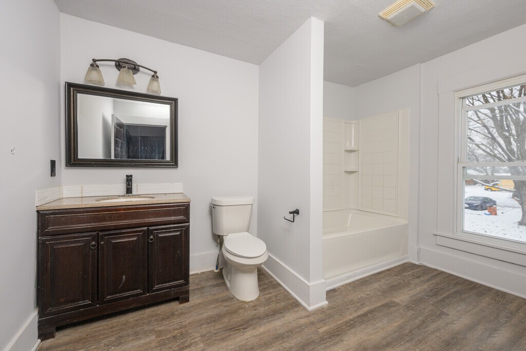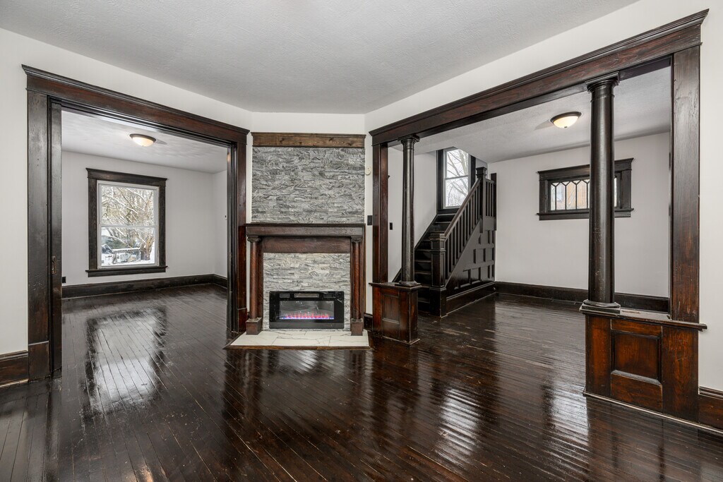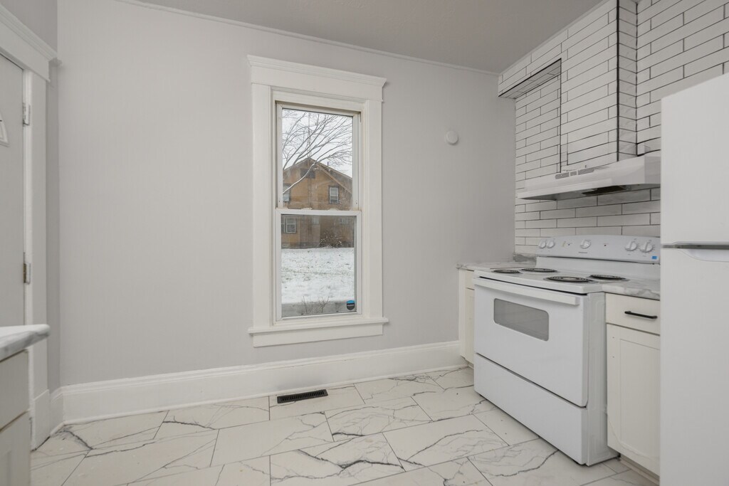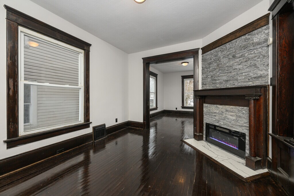 This beautifully and newly renovated 3 bedroom 1 bath house seamlessly blends modern comfort with classic charm. The house boasts warm and inviting hardwood style flooring that flows through out the space leading to a cozy living room featuring a charming gas fireplace for relaxing evenings.