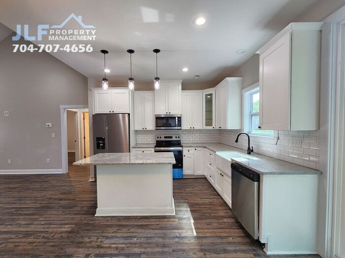 Come see this move in ready 3 bedroom, 2 bathroom ranch built in 2022! The open floor plan is perfect for entertaining. The kitchen comes with ample cabinet space, tile backsplash, and granite topped island. The LVP flooring throughout the home gives a luxury look and feel with little maintenance. There are 3 good sized bedrooms and 2 full bathrooms each with granite countertops and modern fixtures. Conveniently located laundry room off the kitchen. Exit through the rear sliding doors onto the deck and enjoy the beautiful outdoors with mature trees and a spacious yard. Only moments from Downtown Kings Mountain and multiple grocery stores, the location of this home is both private and convenient. Make this house your home today! No pets. No smoking inside. No Section 8. Deposit starting at $1695 (pending strength of application). All applications must be submitted online on our website Each adult applicant 18yrs and older living in home will be required to pay a $65 non-refundable application fee. All of our rental properties are set up for self-scheduled viewing. You can tour the home at your convenience without having to make an appointment. You will find a lockbox on the door with a key inside. All you will need to do is register at in order to get access to the code for that lockbox. When you get to the Rently website, type in the address of the property you are wanting to tour, and they will walk you through the process of registering with them, or after you've registered, how to get the code to the lockbox. It's important to know that the code to the lockbox will only last for one hour. If that code expires before you are able to get to the property, you will need to visit the website again and get a new code. STAY SAFE - DO NOT GET SCAMMED! ~ All email communication comes from @ ~ We will not ask you to pay a deposit online. All our deposits are to be made in certified funds and brought into our office on Pit Stop Court, in Concord ~ An application is a must and needs to be filled out per instructions below. ~ If while viewing the property, anyone claims to be a JLF Management employee, please call us at to verify. * PLEASE NOTE: THIS PROPERTY IS NOT ADVERTISED ON CRAIGSLIST or MARKETPLACE. IF YOU SEE THIS HOME ON CRAIGSLIST or MARKETPLACE, PLEASE FLAG THE LISTING AND CONTACT OUR OFFICE IMMEDIATELY. * This property allows self guided viewing without an appointment. Contact for details.