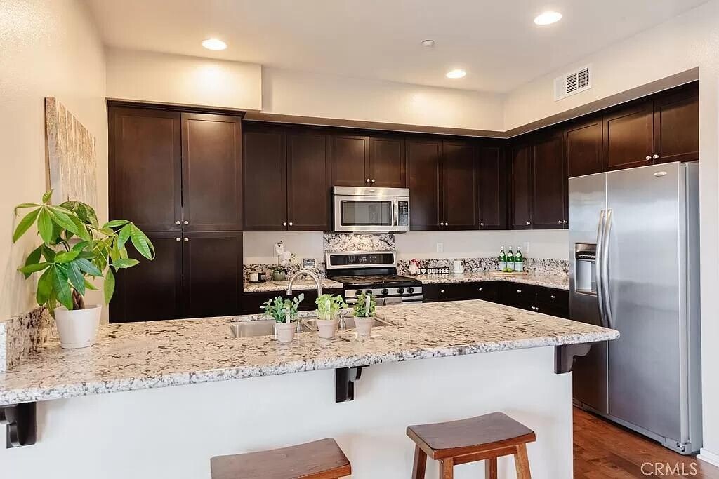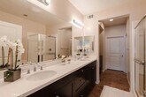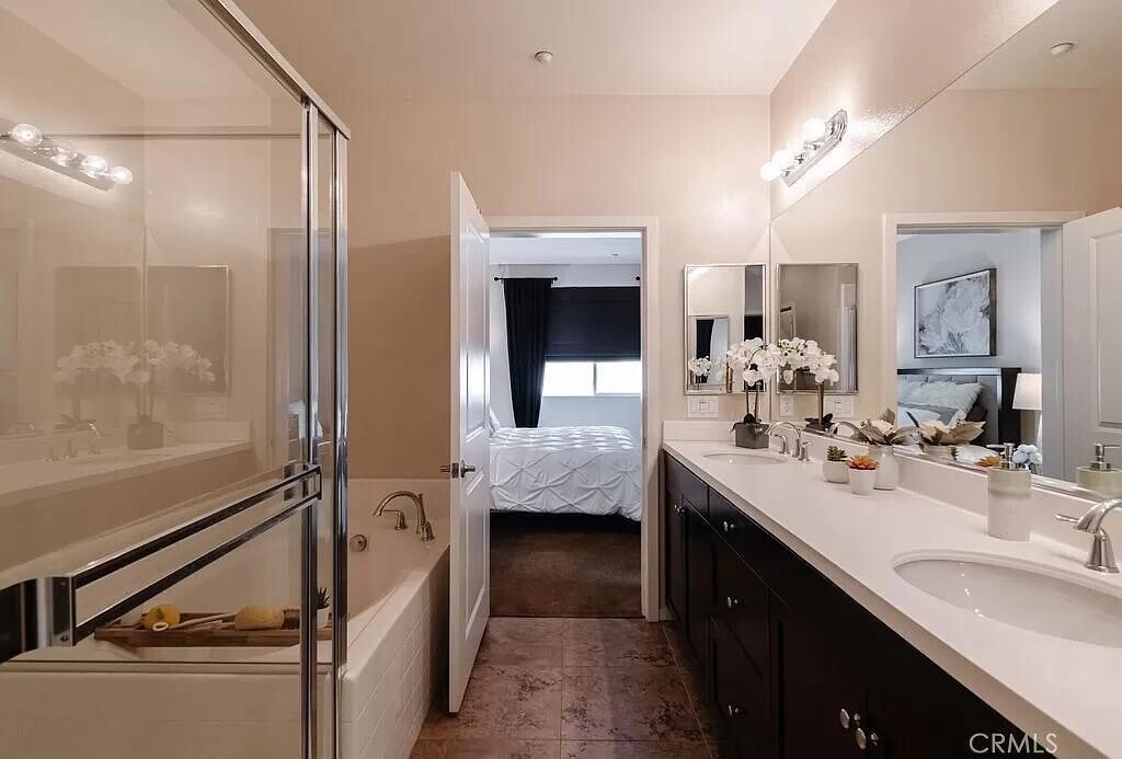 Top-floor, single-level, corner 1-bedroom, 2-bath condo Top-floor, single-level, corner 1-bedroom, 2-bath condo in the Flats-style unit at the gated community of ThreeSixty at South Bay. This highly desirable, spacious one-bedroom offers the best west-facing views of all the Flats buildings. Enjoy stunning sunsets and ocean breezes from the oversized balcony that spans the length of the unit.The open floor plan features a kitchen with a large breakfast bar, dining area, living room, and powder room, providing generous space to live and entertain. The private bedroom includes a large bathroom with double sinks, a separate soaking tub and shower, linen cabinets, and a spacious walk-in closet.This bright, sunny unit also offers its own laundry closet with stackable washer and dryer, hardwood/composite floors, central A/C, custom blinds, and — a rare find in single-level condos north or south of LAX — a private 2-car tandem garage.