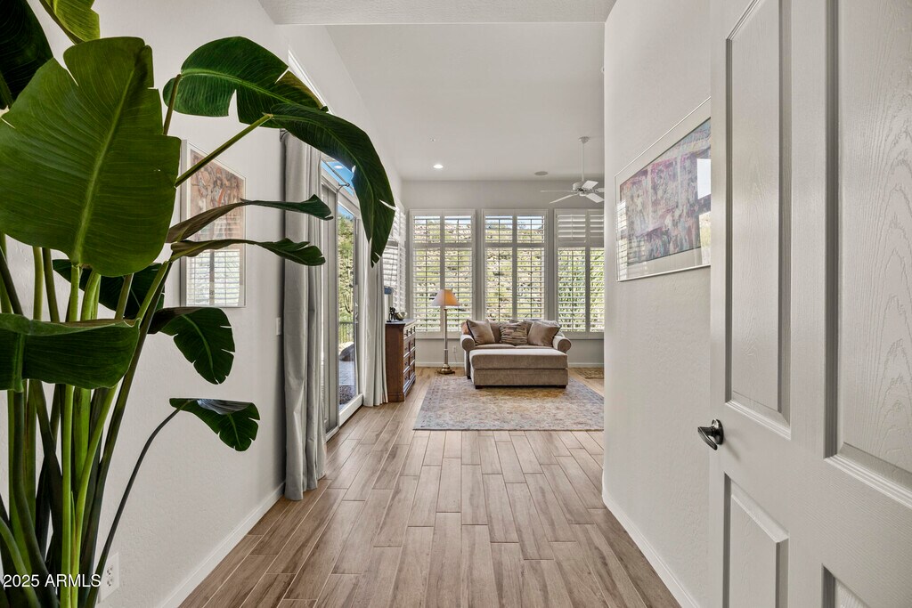 Updated Hidden Hills home is fully furnished -yearly for $6,000 per month or seasonally for $10,000 - just bring your toothbrush. In a gated community,this single level 3 bedroom,3 bath,2 car garage has stunning mountain views. The front courtyard has a double gated entry to the private brick patio,great for outdoor entertaining. Great room features high ceilings,plantation shutters,granite breakfast bar,wine fridge,gourmet kitchen with new stove,microwave and refrigerator by the breakfast nook. Primary has fab mountain views,walk in shower,soaking tub & generous closet. The covered patio adjoins the spa & pool (heated) and built in BBQ. Close to hiking trails (Sunrise Peak Trailhead),Mayo Clinic,top golf courses,dining and shopping. 2 car garage with epoxy floor
