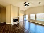 Fall in love with this absolutely stunning 4-bedroom, 2-bath, single-story home featuring 1 living area and 1 dining room, perfectly situated in the heart of Wylie. This open floor plan is designed for comfort and convenience. The spacious kitchen features upgraded black appliances and flows seamlessly into the formal dining area and cozy living room with a charming fireplace — ideal for family gatherings or quiet evenings at home. The home is thoughtfully updated with luxury vinyl, carpet, and tile flooring throughout. The split-bedroom layout provides added privacy, with the primary suite tucked away from the secondary bedrooms. Step outside to a nicely sized backyard, perfect for relaxation, outdoor dining, or entertaining guests. Located within walking distance of the community pool, this home offers both comfort and lifestyle. Refrigerator, washer, and dryer are included, making this truly a move-in-ready gem! Zoned to exemplary Wylie ISD schools.
