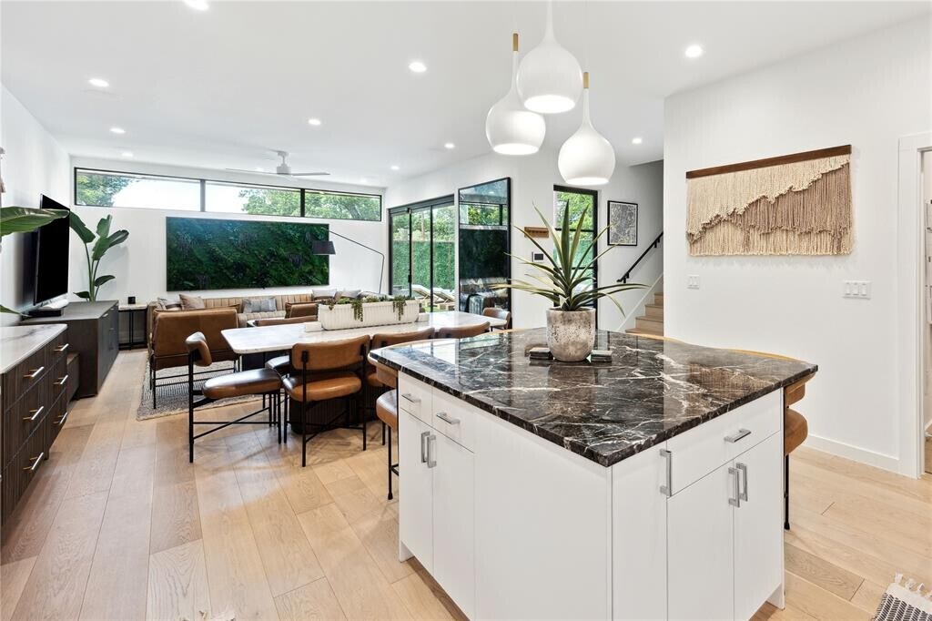 Effortlessly enjoy the best of what Austin has to offer from your luxurious East Austin Oasis. Designed by architect Steve Zargorski in historic Swede Hill, this stunning residence features private, resort style living just steps away from Austin’s highly acclaimed E. 11th St (named the world’s third coolest street, topped only by High Street in Melbourne and Hollywood Road in Hong Kong) / Rosewood neighborhood, all in the heart of Austin’s bustling yet quiet Eastside Neighborhood. This modern home’s chic aesthetic offers a warm and inviting atmosphere which is further enhanced by high end furnishings & thoughtful touches through out. Collapsing glass doors blend the indoor and outdoor living areas while simultaneously flooding the space with natural light. With a seamless open floor plan, the home radiates comfort and flow, making it ideal for family living or entertaining guests. The beautifully appointed courtyard affords the pool and lounge area a privacy that is unmatched. Step through the front gate and know that you are home! The residence has 3 bedrooms, and 3 1/2 baths. No two bedrooms share a common wall providing privacy for each bedroom suite —all meticulously crafted with an eye for quality and detail. Just minutes to Moody Center & Ampitheater, Dell Medical, UT Campus, Downtown Business District, historic 6th street, Austin Convention Center, numerous bars, restaurants and more. The proximity to I-35 makes getting around the city a breeze.
