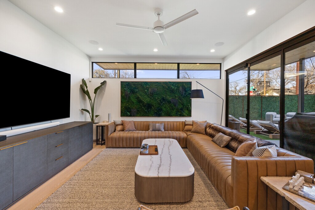 Tucked behind a private gate in one of East Austin’s most vibrant yet peaceful pockets, this architecturally striking home offers a rare blend of modern design and secluded, resort-style living. Located in the historic Swede Hill area, just moments from East 11th Street and Rosewood, the home places you at the center of Austin’s cultural energy while preserving a sense of calm and retreat. The interior is thoughtfully designed with clean lines, warm finishes, and an open layout that flows effortlessly from room to room. Expansive glass doors open to a beautifully enclosed courtyard, creating a seamless connection between indoor and outdoor living and filling the home with natural light throughout the day. The private pool and lounge area feel like a personal oasis — ideal for relaxing, entertaining, or simply unplugging. Each of the three bedroom suites is positioned for maximum privacy, with no shared walls, and features its own well-appointed bathroom. A half bath serves the main living areas, making the home equally functional for daily living and hosting guests. Every detail reflects quality craftsmanship and intentional design. Just minutes from Downtown Austin, UT, Dell Medical School, the Moody Center, and some of the city’s most celebrated restaurants, music venues, and nightlife, this location offers unmatched access to the best of Austin. Easy proximity to I-35 ensures seamless connectivity across the city. This is a rare opportunity to lease a private, design-forward residence that feels both connected and removed — a true East Austin sanctuary.