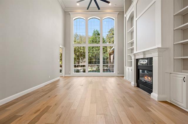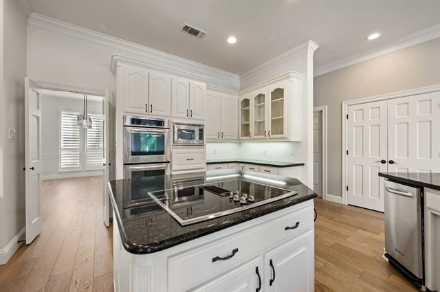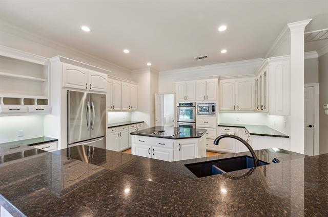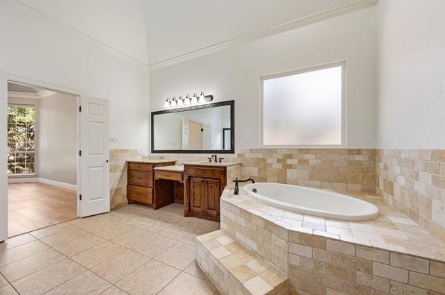Welcome to this stunning 5-bedroom, 6-bathroom home located in the desirable Monticello Addition in Southlake. This property boasts a large living room with soaring ceilings and a cozy fireplace, perfect for entertaining or relaxing. The gourmet kitchen is a chef's dream, featuring granite countertops and stainless appliances. The primary suite and an additional guest bedroom are conveniently located downstairs, offering easy accessibility. The home also includes a study with built-in shelves, perfect for a home office or library. A dual staircase leads you to the second floor where you'll find a spacious game room and three additional guest rooms. The property is situated on a large treed lot, complete with a pool and sports court for outdoor enjoyment. The home is beautifully accented with extensive wood mouldings throughout, adding a touch of elegance. This Southlake gem is waiting for you to make it your own.