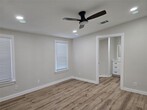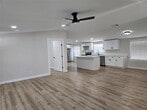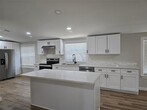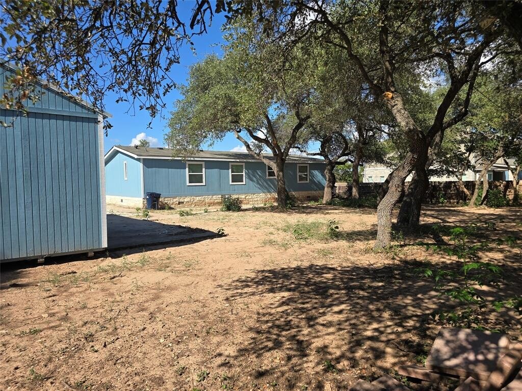 Unique property sited on a large lot .75 of an acre and surrounded by beautiful oak trees, little restrictions, if you have a work trailer or a work truck you can park here. HM has been totally renovated and makes it feel like a house. Interior features all wood looking laminate floors, No Carpet. Center island, new cabinets, quartz counters all new appliances, new central AC, nice covered porch, and comes with huge storage. No HOA.