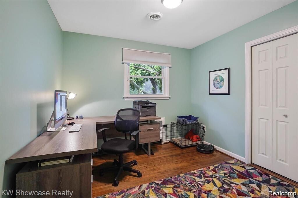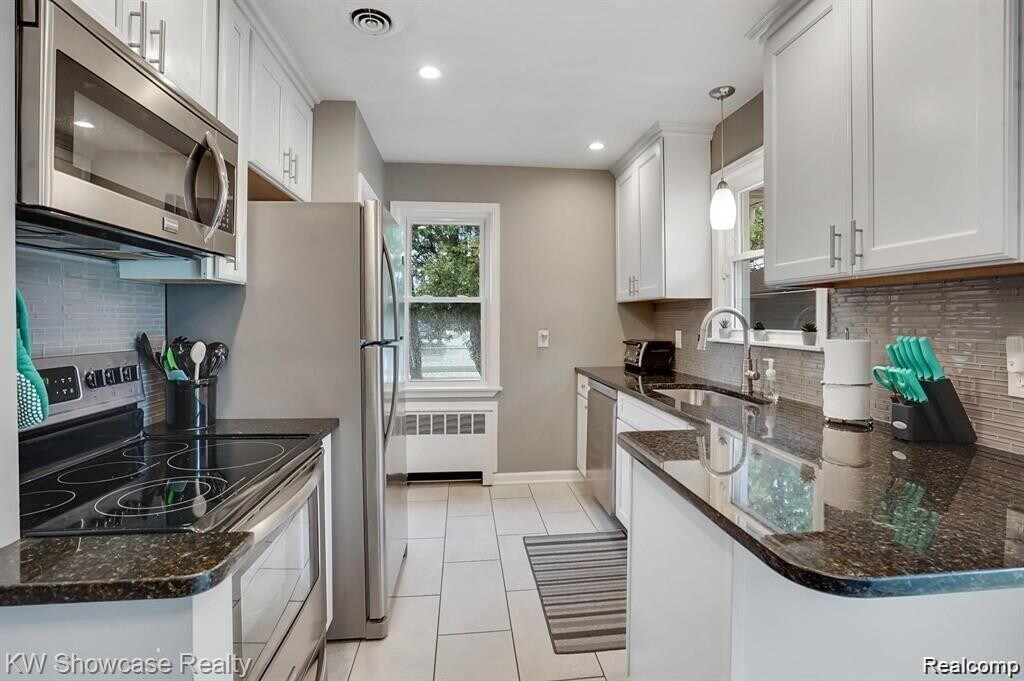 This beautiful Royal Oak ranch is situated on a quiet street across from Lockman Park and within walking distance to Keller Elementary School. Step inside and be greeted by a charming entryway that flows into an open floorplan. The living room boasts elegant hardwood floors, while the beautifully updated kitchen showcases stainless steel appliances, a dining area, and a convenient doorwall. The main bath has been updated with a shower and tub, and the spacious bedrooms feature hardwood flooring. The fully finished lower level offers an updated bath, a family room, a recreational area, and a laundry room, all with ample storage space. Outside, you'll find a large, fully fenced backyard with a privacy fence, a double driveway, and a spacious 2.5 car garage measuring 23 x 27 feet. The garage comes equipped with 220-volt electrical service, gas, a floor drain, and a workshop area, providing the perfect space for your projects and storage needs.