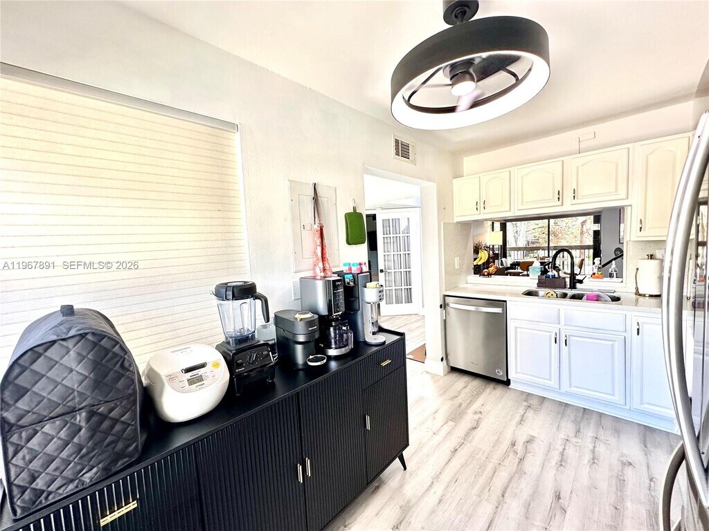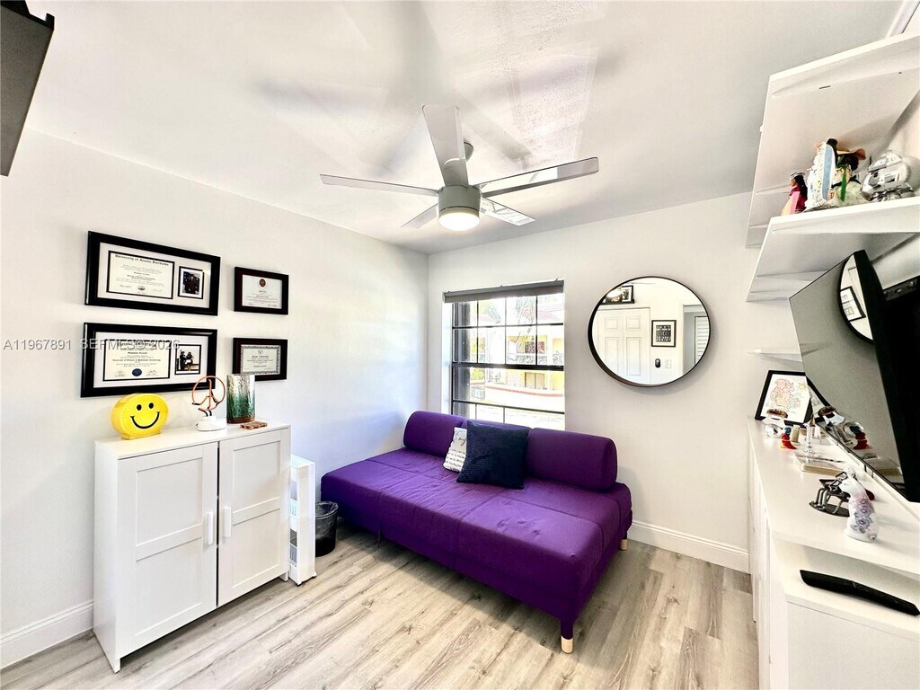 Beautiful 3-bedroom, 2-bathroom condo + den located in the highly desirable Elan at Calusa. This spacious layout features three generously sized bedrooms and two full bathrooms, plus a dreamy second-floor den or office—perfect for relaxing, working from home, or enjoying added privacy.The unit offers walk-in closets, modern flooring, and a beautifully updated kitchen with stainless steel appliances and quartz countertops. Washer and dryer are included. Step out onto the ample balcony and enjoy serene garden views.Enjoy resort-style living in a well-maintained community with 24/7 security patrol, tennis and pickleball courts, a community pool, lush landscaping, and more. Excellent location! A+ Schools, Close to shopping centers, restaurants, banks, supermarkets, cinemas, and much more. Just minutes from the Turnpike. Must see to appreciate! MLS # A11967891