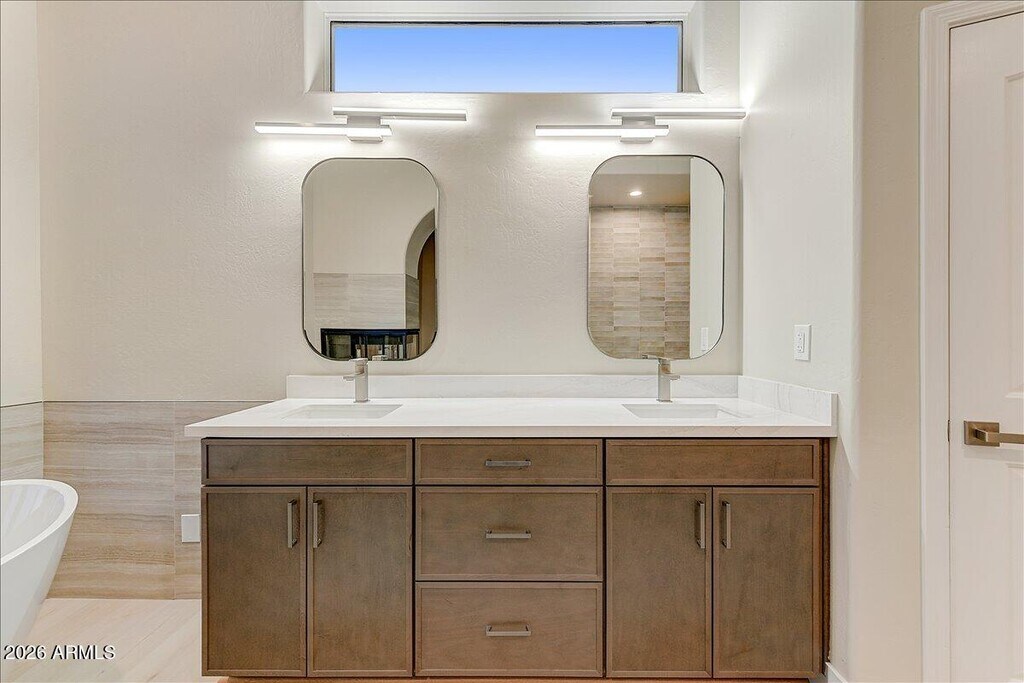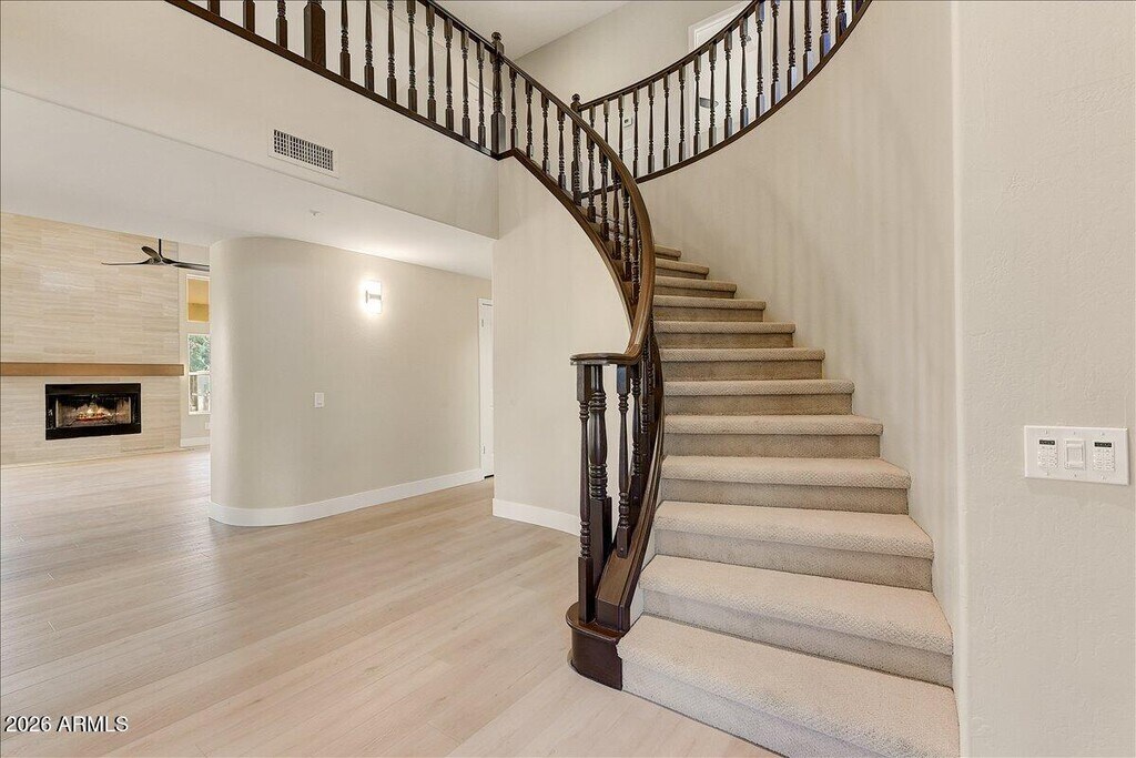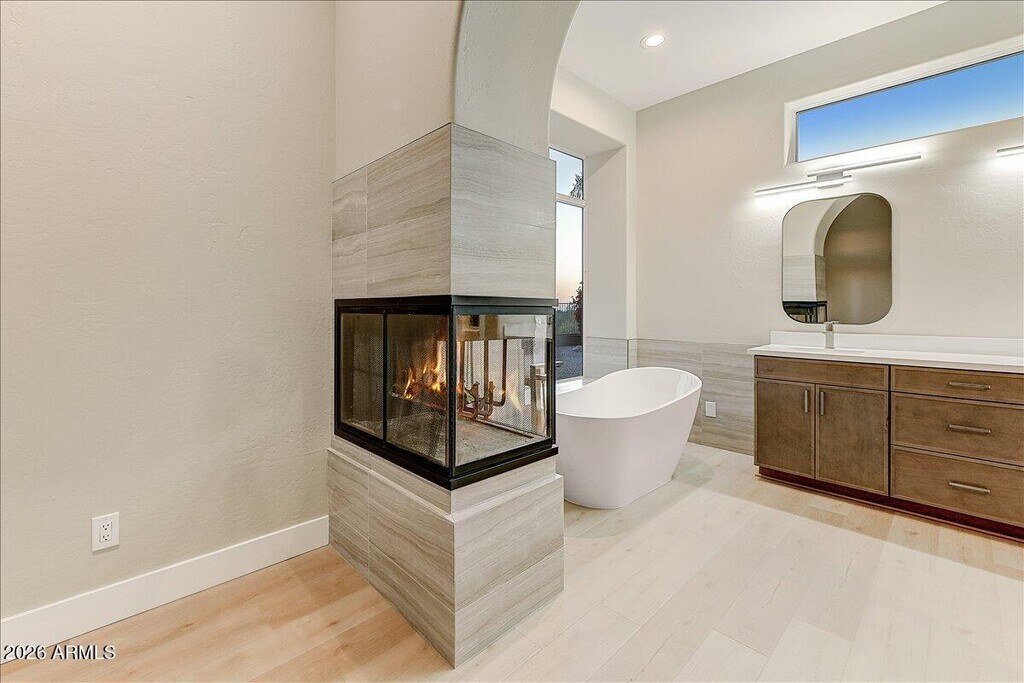 Fully remodeled and spacious two-story Scottsdale RENTAL home in the Scottsdale McDowell Mountains! This 5-bedroom,3-bath beauty has been completely transformed and offers an oversized south-facing backyard with fruit trees,easy-care turf,a sparkling pool,and stunning mountain views with vast open desert directly behind the large lot. Ideally located,it's within walking distance of Desert Mountain High School and just minutes from the Mayo Clinic,combining luxury with convenience. Step inside to discover sleek high-end LVP flooring,a dramatic foyer with a circular staircase,and formal living and dining spaces enhanced by modern LED lighting. The reimagined gourmet kitchen features brand-new stainless-steel appliances,quartz countertops,and a spacious island,perfect for entertaining. The cozy family room is complete with a fireplace and wine bar for ultimate relaxation. The main-level primary suite is a private retreat,featuring a two-way fireplace,an oversized shower,a soaking tub,a double vanity,and a walk-in closet. Additional highlights include ceiling fans in all bedrooms,an extra deep freezer in the epoxy-finished garage complete with EV Charging hookup,and all brand-new solid wood cabinetry,sinks,fixtures,and toilets throughout. This home is the perfect mix of style,comfort,and practicality - this one won't last!