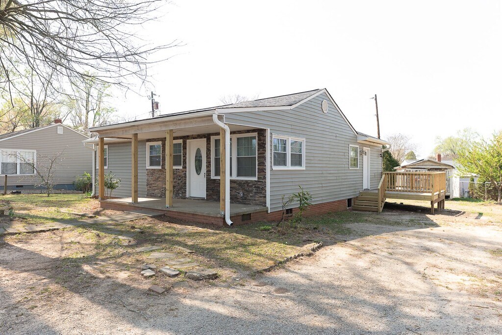 3-bedroom, 2-bath single-family home located at 1305 Andover Ave in Greensboro. This home has been updated with new LVP flooring, fresh interior paint, new cabinets with butcher block countertops, and stainless steel appliances. The layout includes a separate, dedicated dining room with vaulted ceilings, distinct from the living area, creating a more defined and functional living space. The primary bedroom features a private ensuite bathroom. Additional updates include new HVAC and updated windows for improved efficiency. Outside, the property offers a deck for outdoor use along with a storage shed in the backyard. This home provides a clean, updated interior with practical upgrades and a functional layout.