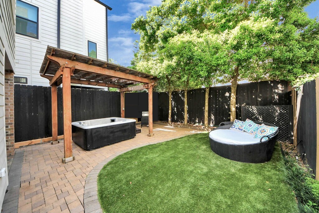 **ALSO OFFERED FULLY FURNISHED FOR $3750/MO** Welcome to 1305 Birdsaw Street,a fully renovated gem nestled in the vibrant Rice Military/Washington Corridor. This striking home blends modern design with thoughtful finishes across 3 bedrooms and 2 full baths,with study/office area. The open layout features a luxe,chef-ready kitchen with stone countertops,high vaulted ceilings,sleek lighting,and refinished wood floors throughout. The spacious first-floor primary suite offers privacy and elegance,while upstairs additional bedrooms enjoy ample light. Step outside to your private oasis — perfectly landscaped low-maintenance turf,a pergola-covered hot tub,and extended driveway for extra parking. Just a short stroll to Memorial Park,minutes from Downtown,River Oaks,Montrose,and the Galleria. Urban convenience meets tranquil living in this turnkey retreat. MLS# 38531430