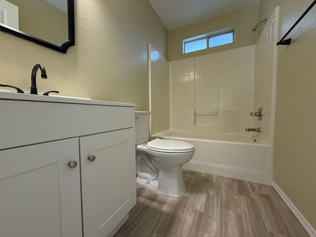 4 bed 2 bath single family home in Killeen, TX. This spacious layout features a mix of plank flooring and plush carpet throughout. The primary bathroom includes a double vanity, and a dedicated laundry room offers convenient washer and dryer hookups. Enjoy a covered back patio, a fenced-in yard, and an attached 2-car garage for added storage and parking. Virtual tour coming soon! Disclaimer: The furnishings or enhancements shown are AI-generated and intended for inspiration only. They may not reflect the actual scale, condition, or current features of the property.