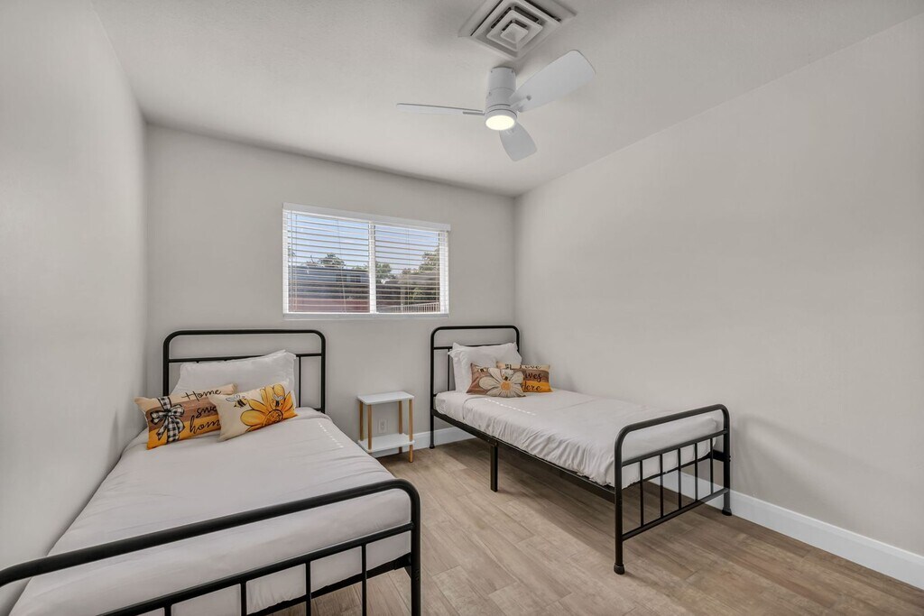 Welcome to your Las Vegas retreat! Fully furnished 5 bed, 2 bath single story home. Tucked in a quiet neighborhood, you get a peaceful place to unwind while still being mins from shopping, dining, & entertainment. The location is ideal! **10 mins to the Arts District, 15 mins to The Strip, & 20 mins to the airport** Making it easy to enjoy everything the city has to offer. The home is thoughtfully set up so you can simply bring your suitcase & settle in. Spacious living areas create room to relax or gather with friends & family. For entertainment, enjoy an air hockey table & foosball table, perfect for game nights & friendly competition. Private pool, covered patio, & grill area create an inviting space to lounge, dine outdoors, or cool off after a long day. Whether you're here for work, extended travel, or simply to enjoy the city, this home offers the comfort of a private residence with the convenience of a central Las Vegas location. Internet included, utilities capped @ $300/M. Anything over will be billed to the tenant. Lease term: 31 days or 1-3 Months Application Fee: $75 Initiation Lease set up fee: $150