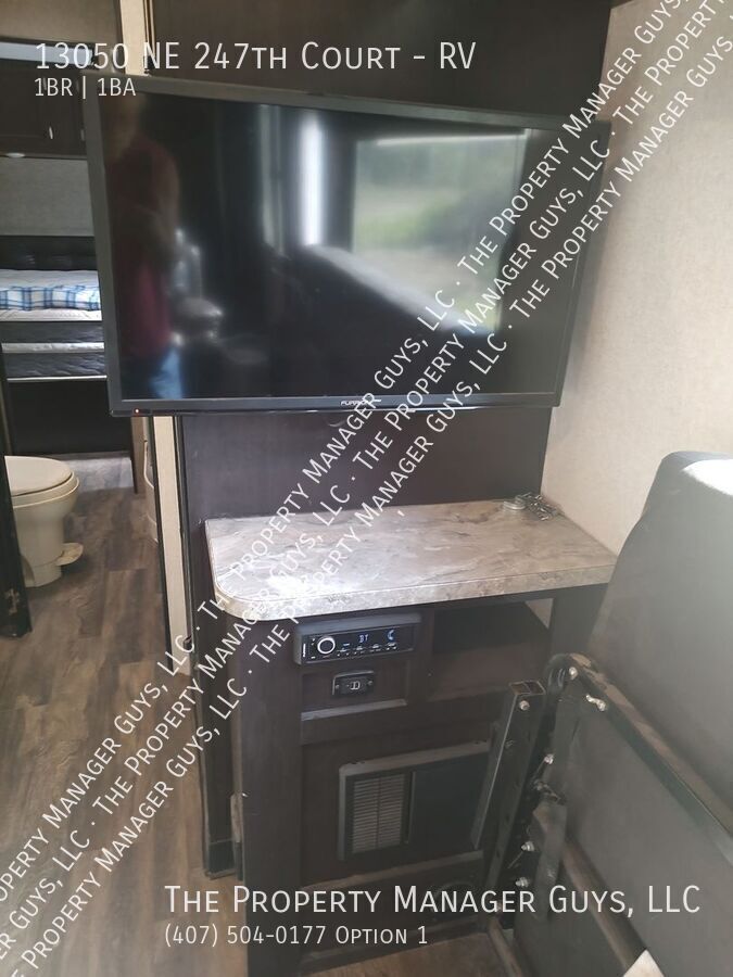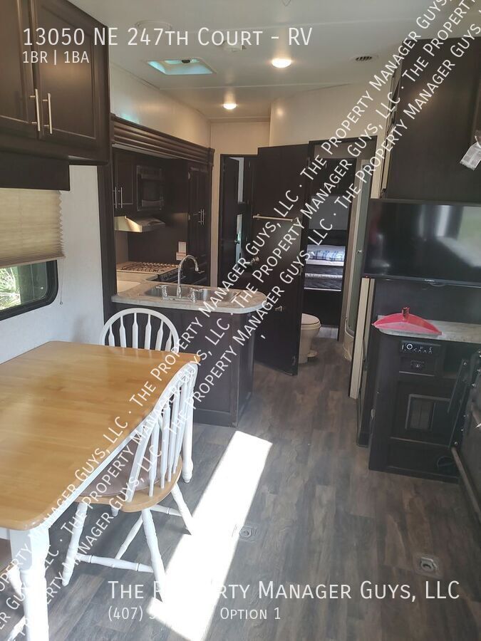 1 Bedroom, 1 Bath RV in Ocala with everything included! Two queen beds and a single pull out. Pots, pans, silverware, cooking utensils, toaster, sheets, pillows, etc. Minutes away from Salt Run entrance to Lake George, St. John's River and Ocala National Forest. RV has generator backup, fuel station, outdoor security lighting. Two entry doors and an 8X8 drop down porch. Renter will need to get a PO Box for mail. Pets are NOT allowed! First Month's Rent, Last Month's Rent, and Security Deposit are required at lease signing. We are not currently accepting Section 8. WE DO NOT ADVERTISE ANY OF OUR PROPERTIES ON CRAIGSLIST OR FB MARKETPLACE! IF YOU FOUND THIS PROPERTY THROUGH EITHER SITE YOU MAY BE THE TARGET OF A SCAM. TO VIEW THE ACTUAL LISTING OF THIS PROPERTY PLEASE VISIT OUR WEBSITE AT AND SEARCH AVAILABLE HOMES FOR RENT OR CALL YEAR BUILT: SCREEN PORCH: FLORIDA ROOM: STORAGE SHED: FIRE PLACE: WASHER/DRYER: POOL: HOT WATER HEATER: FLOOR COVERING: FENCED YARD: POWER COMPANY: WATER COMPANY: CITY SEWER or SEPTIC: SCHOOLS: -ELEMENTARY: -MIDDLE SCHOOL: -HIGH SCHOOL: AIR CONDITIONING: HEATING: OTHER FEATURES: