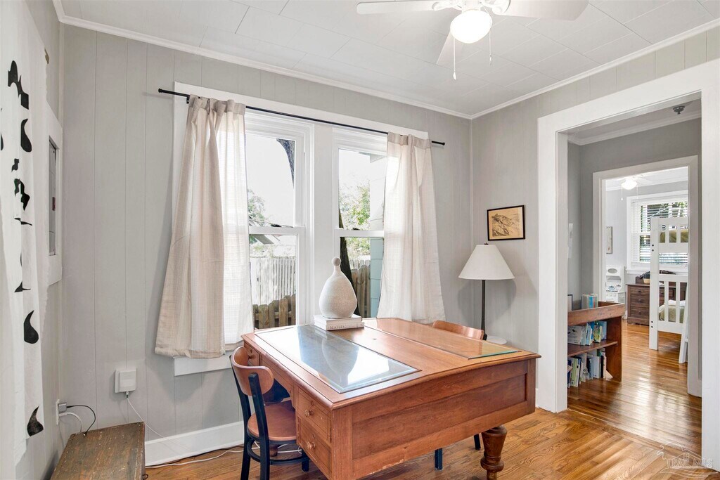 Charming East Hill Home! Located just off 12th Avenue in the heart of Historic East Hill,this inviting 3-bedroom,1-bath home blends classic character with thoughtful modern updates. Original hardwood floors run throughout the living areas and bedrooms,while ceramic tile accents the kitchen and bath. The updated kitchen features granite countertops,a gas cooktop and stove,built-in microwave,and all stainless-steel appliances. The home also offers a bright living room,a cozy breakfast nook,a dedicated office/study perfect for remote work,and an oversized updated laundry area that includes a washer and dryer. Step outside to a back deck overlooking the fully fenced backyard,along with a storage shed that provides extra space. Recent improvements include new impact windows for added efficiency,a new roof,and a county-recorded effective year of 1990. New French doors leading to the backyard are on order and will be installed soon. From this prime East Hill location,you can walk to neighborhood parks,the dog beach,local shops,restaurants,and more. Homes in East Hill rent quickly—schedule your showing today!