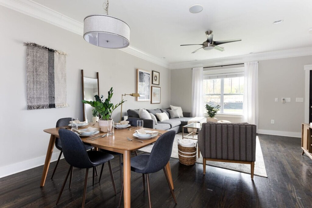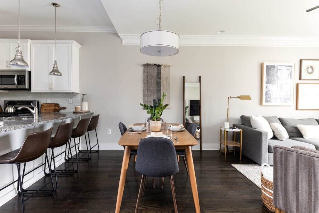 Welcome to this charming 3-story townhome in the heart of Nashville, offering everything you need for a relaxing urban escape. Enjoy a cozy living room, bright open layout, and all the Nashville vibes. Take a short stroll to nearby shops, music venues, bars, and restaurants, then return to a fully equipped home for comfort and relaxation. You'll love the location, just a walk away from the shops and restaurants of Edgehill, Hillsboro Village, and 12 South. Situated across the street from Belmont University, this home features ensuite bathrooms for each bedroom, a fully equipped kitchen with an open layout, reliable Wi-Fi, and a dedicated workspace. Enjoy smart TVs to log into your favorite streaming apps or cast from your phone, central heating and AC for year-round comfort, and private laundry facilities with a washer and dryer. The property also offers a 2-car garage and plenty of street parking. Dog-friendly with a $150 pet fee per stay for up to 2 dogs, with no breed or weight restrictions. Located directly across from Belmont University and in the trendy Edgehill neighborhood, this home puts you within 10 minutes of everything Nashville has to offer. Enjoy the nearby coffee shop, Makai, and a smoothie shop next door, plus a short walk to great restaurants and shops in Edgehill. Favorites include Barcelona, Sadie's, and Old Glory Cocktail Bar. Commute times by car include 5 minutes to The Gulch, 12th South, and Vanderbilt, 7 minutes to Broadway, 8 minutes to Nissan Stadium, 10 minutes to Five Points in East Nashville, and 12 minutes to Germantown and Sounds Stadium. Quiet hours are from 10 p.m. to 8 a.m. Renters must be at least 21 years of age, and guests under the minimum age must be accompanied by a parent or legal guardian. The property shall not be used by more than the number of adults and children listed in your reservation. No smoking is permitted on the property, including porches, decks, or outdoor areas, at any time. All guests shall not engage in illegal activity. Refrain from using decorations that include glitter or confetti or using tape, tacks, or other adhesive on the surfaces. There will be an additional cleaning fee of up to $500 for violations of the house rules or for excessive cleaning required. Includes reliable Wi-Fi and a dedicated workspace, ensuring a remote work-friendly environment. Registration Number: CASR [SI]