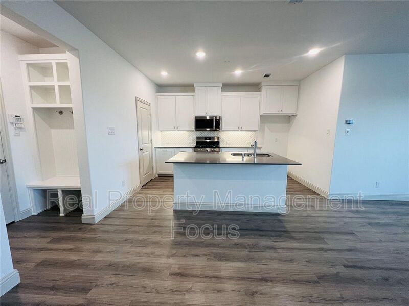 Come see your lovely townhouse in Frisco ISD, located on the central green space! Open floorplan with a large living room and laminate wood floors on the main floor, eat-in kitchen with quartz countertops, white shaker cabinets, gas range and convenient mud bench right inside the garage door. Upstairs you'll find a second living room, game room or office, split bedrooms and full-size washer and dryer hookups. Spacious primary bedroom and bathroom with dual sinks, oversized shower and large walk-in closet. Modern finishes are carried into the guest bathroom, which also features quartz countertops and dual sinks. Conveniently located near Costco, HEB and many other shopping and dining establishments. Amenities: Located on Green Space