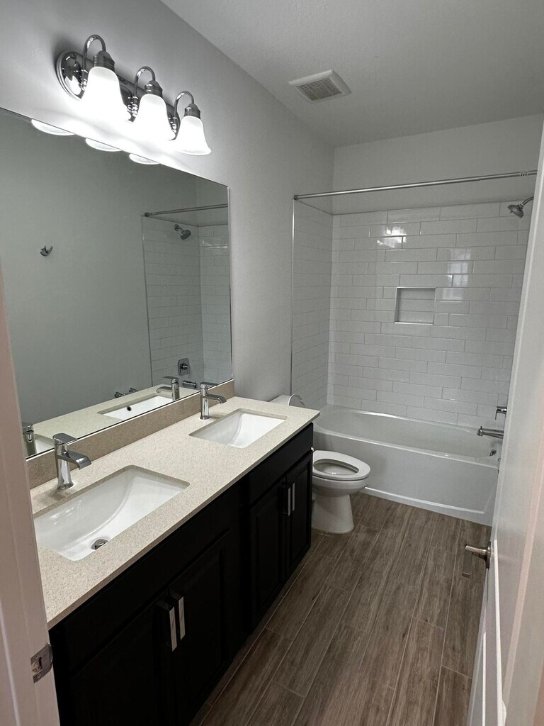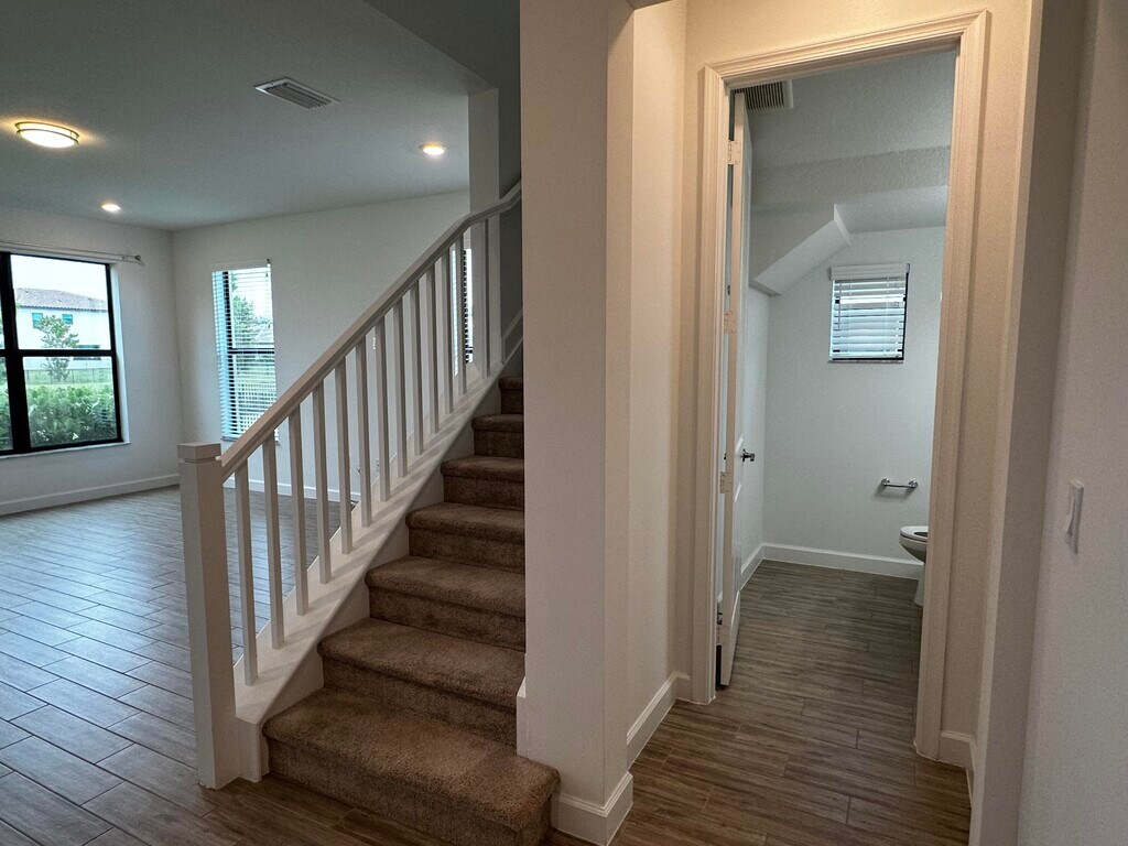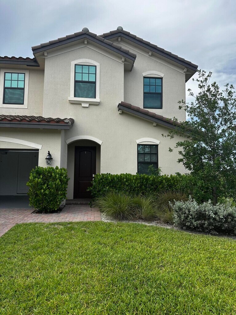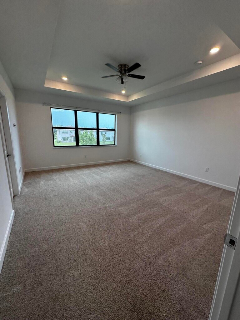 Located in the highly sought after Bellasera community, this home offers a resort style pool and jacuzzi, state of the art gym, clubhouse, pickleball, basketball, and tennis courts, playground, volleyball, a business center. This stunning 4-bedroom, 3.5-bathroom homes has a spacious living space that features an open floor plan. The modern kitchen is equipped with stainless steel appliances, a large kitchen island, and plenty of counter space. A bonus office/den on the first floor is perfect for a home office, a playroom, or a quiet reading nook. The primary bedroom includes a walk-in closet and an en-suite bathroom with double sinks, separate tub and shower, and amazing lake views right from your bedroom. 2nd bedroom with full en-suite bathroom and 3rd bathroom upstairs with dual sinks.