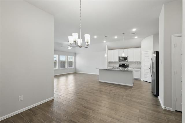 Brand new home. Never lived in. Built by M-I Homes. Make your new home dreams come true in this 4-bedroom, 1-story, new construction home at Woodstone! This beautifully designed layout features an open-concept heart of the home, wood-look tile flooring in the main living spaces, and exceptional finishes throughout. Step up onto the covered front porch and then into the foyer to find 2 of the bedrooms and a convenient full bathroom. From the white-painted cabinets, to the stainless steel appliances, the large island and the roomy corner pantry, this kitchen truly checks off all the boxes! There's even a well-lit dining room right next to it. The owner's bedroom is tucked off its own private hallway near the family room, and as you step into the suite, you'll first pass a walk-in closet with shelving. Double doors separate the owner's bedroom from its en-suite bathroom, elevating this outstanding space. Enjoy dual sinks and marble-inspired tile surrounding the walk-in shower. MI Homes has community pool and Park in the neighborhood. Schedule your visit to see this home today!