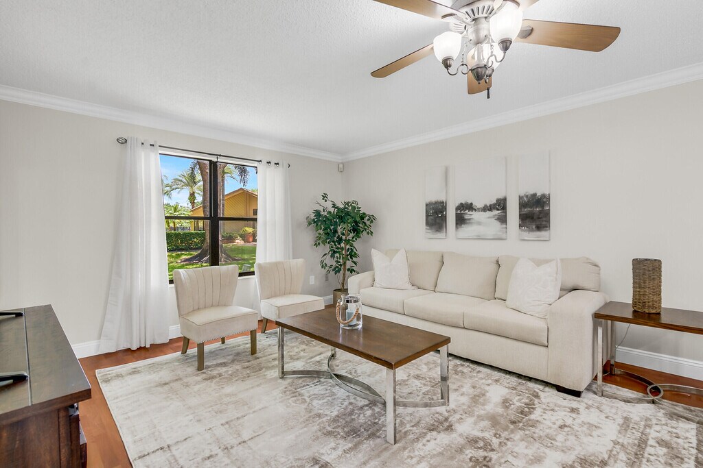 Experience the season in style with this stunning, fully furnished 2-bed, 2-bath end unit, perfectly situated on the ground floor. This bright and airy home boasts an open-concept design, complemented by expansive front and back patios ideal for relaxing or entertaining. Just a short stroll from your door, you'll find a refreshing community pool. Located minutes from Wellington's premier attractions, including WEF, IPC, and Global Dressage, this is the ideal home base for enjoying all that the area has to offer.