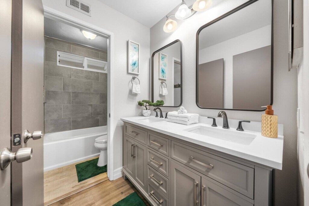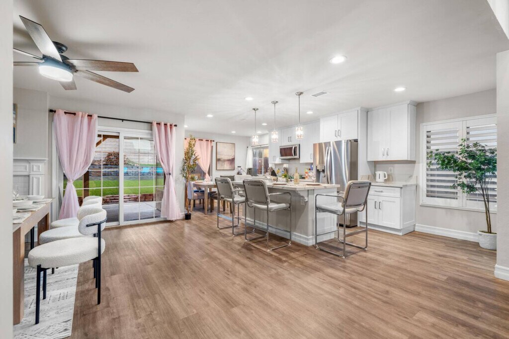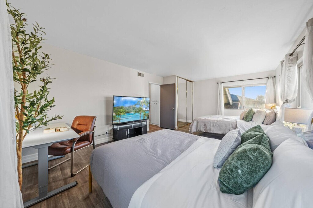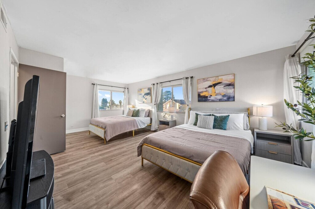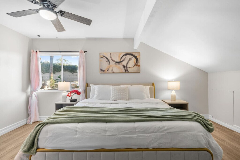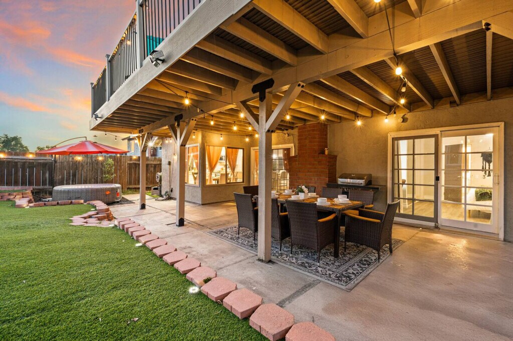 Welcome to this family home in Rancho Peñasquitos, San Diego, where you can feel at home. This property features 5 bedrooms, 2.5 bathrooms, and a big gated yard. This home is centrally air-conditioned and includes a living room with a 75-inch flat-screen TV, cable with over 100 free local channels, Smart Roku for Netflix, YouTube, and Disney+, and a PS4 game console with 3 controllers and video games. The kitchen is equipped with modern appliances, including a coffee machine, and essentials like coffee, cooking oil, sugar, and salt. The bathrooms are fully stocked with shampoo, body wash, a hairdryer, and fresh towels. There is an in-unit washer, dryer, and detergent available for your convenience. Enjoy the hot tub and grill in the massive gated yard. Driveway and garage parking are available for at least 4 cars. Pets are welcome. Located in the vibrant and family-friendly Rancho Peñasquitos, Mira Mesa area, this home offers quick access to major freeways (I-15 and I-805), making it easy to reach downtown San Diego, La Jolla, UCSD, beaches, Disneyland, or Mexico. You're also just 20–25 minutes from the beaches of Torrey Pines, La Jolla Shores, and Pacific Beach, and less than 30 minutes from San Diego International Airport. Enjoy nearby shopping centers and restaurants with Asian, Mexican, American, and European cuisine. Excessive noise may lead to neighbor complaints or visits from local authorities, and a $1,000 violation fee may apply, as it could risk the suspension of the partner's listing or your account. Only guests and pets counted on the reservation are allowed on the property, and each unauthorized guest or pet may incur a $100 per person/pet per day/night fee. Visitors (non-overnight guests) are welcome with advance notice, subject to approval, and counted as half a guest toward the guest count. Tampering with or disconnecting security cameras, noise monitors, or other security devices will result in a $1000 fine. Fast 500 Mbps Wi-Fi is available. [SI]