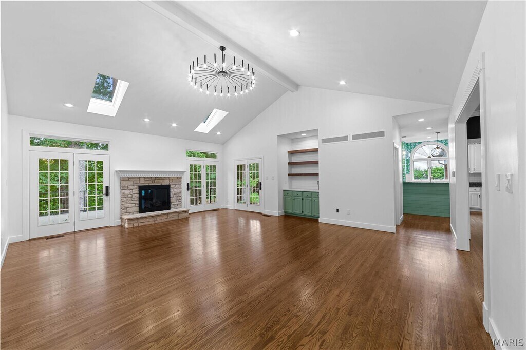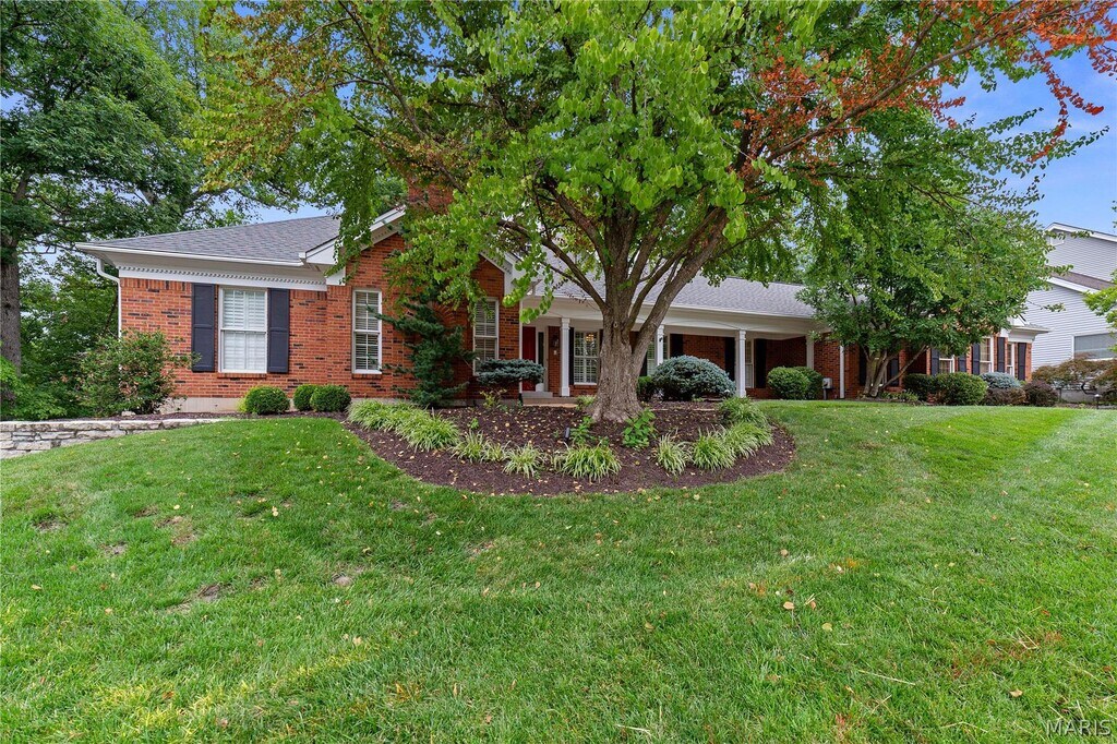 Available May 2026. Beautifully crafted, one level living that sparkles with great finishes for floorplan comfort and style. Newer interior paint, custom lighting throughout ,refinished oak floors. Vibrant primary bedroom with skylit suite, plus two more bedrooms and baths done in marble and tile. Durable white shutters throughout interior. Granite & stainless kitchen flows with the main floor laundry, formal dining room and private patio. Vaulted great room with fireplace and wet bar steps out to new peaceful secluded tiered decking and landscaping. Roomy full basement has walkout ,full size windows and poured foundation. Wide 3-car garage with turnaround drive nestled on a private, quiet cul de sac and mature trees walks into kitchen mudroom/laundry. Privately located in Parkway Central School District with smooth connections to major employers/campuses, parks ,Clarkson/Olive and Chesterfield Valley retail.