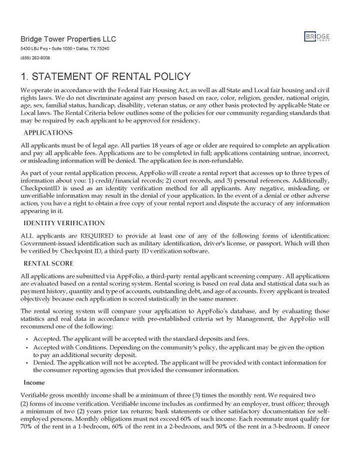 Unit Rent and Fees
