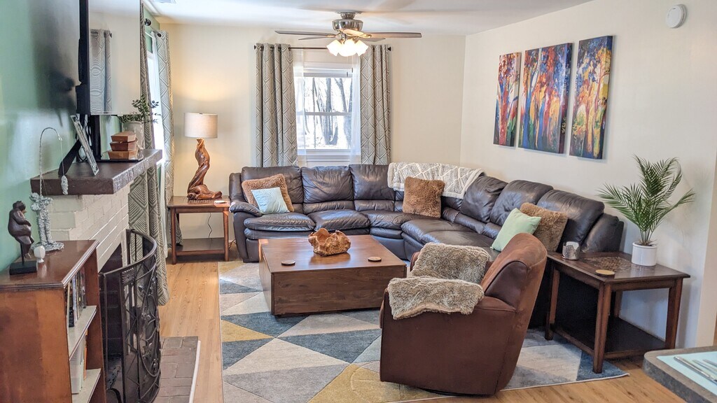 Live in Bigfoot's house while he wanders the woods!Gas fireplace 3 ski resorts - 15 minBoard games galore Kid's dishware3 indoor waterparks Stocked kitchenLake w/ beach Fenced yard w/ firepit3 min Walmart, Wawa, Starbucks, McDonald's King Bed, 2 twins, toddler bed & portable cotTwo 55" Roku TVsShed for ski & snowboard gearWhat our guests are saying:"Superb location.""Your humorous touch is a joy for the kids" "Just WOW."