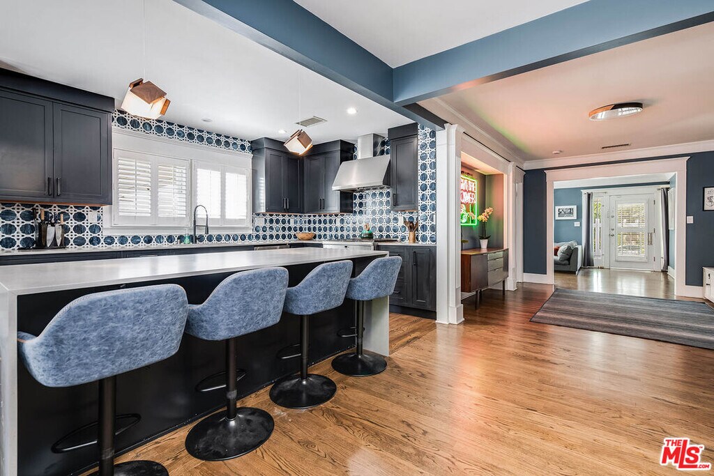 Quintessential Spaulding Square Craftsman blending timeless character with refined modern updates for elevated California living. This beautifully reimagined 4-bedroom, 4-bath residence with pool, spa, and separate recreation room has been thoughtfully redesigned to balance classic architectural charm with the comforts of contemporary living. Ideally located on a picturesque tree-lined street within the coveted Spaulding Square HPOZ, just moments from some of the city's most celebrated dining, shopping, nightlife, and entertainment. The heart of the home is a stunning chef's kitchen appointed with top-of-the-line appliances, an oversized island with bar seating, and a sunlit breakfast nook, creating an ideal setting for both everyday living and effortless entertaining. Rich oak floors, beautifully renovated baths, solar, and updated systems throughout enhance both comfort and style. Outdoors, the private backyard retreat features a pool, spa, fire pit, and inviting patio spaces perfect for hosting gatherings or enjoying quiet moments at home. The detached recreation room offers additional flexibility for a gym, studio, office, or guest retreat, plus gated driveway and garage completing this exceptional offering in one of Los Angeles' most beloved historic neighborhoods. MLS# 26662087