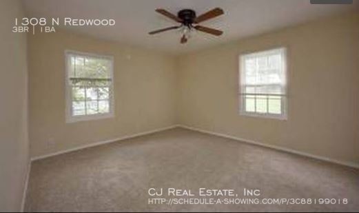 There is currently a 3 Bed 1 Bath Home for rent sq ft listed at 1308 N Redwood Dr. It is Available Now.