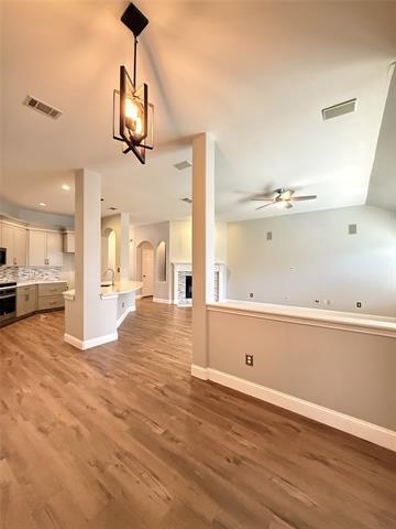 Welcome to this move-in ready, cozy home, located in the highly desirable Mansfield school district with no HOA restrictions. As you pull up to the front of the house, notice the beautiful landscape and the front porch sitting area that greets you. Walk through the front door and you still see a welcoming foyer that leads directly into the inviting living room. To the right of the front door is the formal dining room with a distinct blue hue painting. To the left is a spacious room with French doors that can be an office, kids play room, another bedroom, or practically anything you desire. Don't forget the modern plantation shutters in the front windows. Further down the foyer, to the right, you will be greeted with the open layout kitchen that looks into the spacious living room and breakfast nook. Notice the gorgeous eat-in island for easy entertaining. The living room has a decorative fireplace and high ceiling. The secondary bedrooms are to the left of that and both bedrooms have good size walk-in closets and ceiling fans. The primary bedroom is split on the opposite side of the house, which features bay windows, a door to the backyard, dual sinks, an oversized walk in shower with sitting area, and a good size closet. Luxury vinyl planks throughout the house with upgraded tile in the bathrooms and no carpet anywhere. As you step in the backyard, you will see a screened-in porch, perfect for those morning coffee and evening tea, and plenty of room for the kids to roam around. This property is centrally located less than 10 mins from everything you need such as restaurants, grocery shops, the freeway, movie theater, and the new HEB. There are multiple parks and schools nearby. Come check this out today and don't miss it. We do not accept Section 8 vouchers.